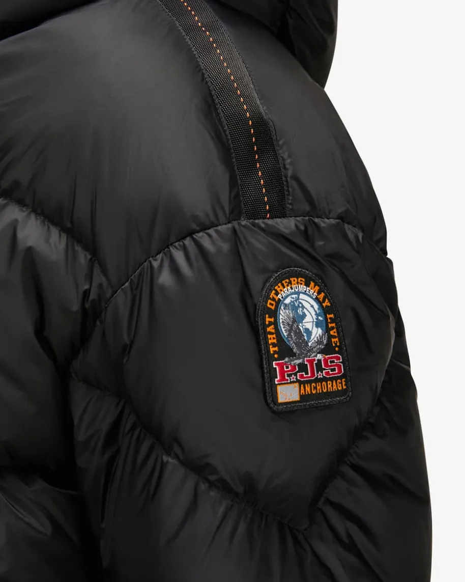 Tilly Daunenjacke für Damen von Parajumpers in Schwarz. Inspiriert von denmutigen Parajumpers, die unter extremen Umständen Rettungsoperationen undBergungen ausführen müssen, entstand die Philosophie des italienischen LabelsOutdoor-Mode zu entwerfen, die robust und zeitlos, aber auch modern und stilvollist. Dieses Modell präsentiert sich als sportiver Begleiter an kalten Tagen.