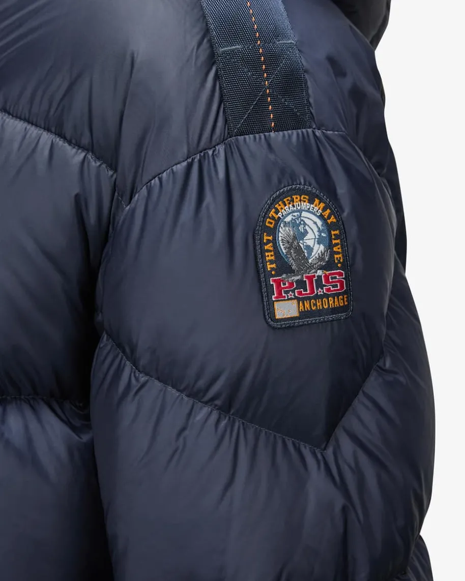 Tilly Daunenjacke für Damen von Parajumpers in Navy. Inspiriert von den mutigenParajumpers, die unter extremen Umständen Rettungsoperationen und Bergungenausführen müssen, entstand die Philosophie des italienischen Labels Outdoor-Modezu entwerfen, die robust und zeitlos, aber auch modern und stilvoll ist. DiesesModell präsentiert sich als sportiver Begleiter an kalten Tagen.