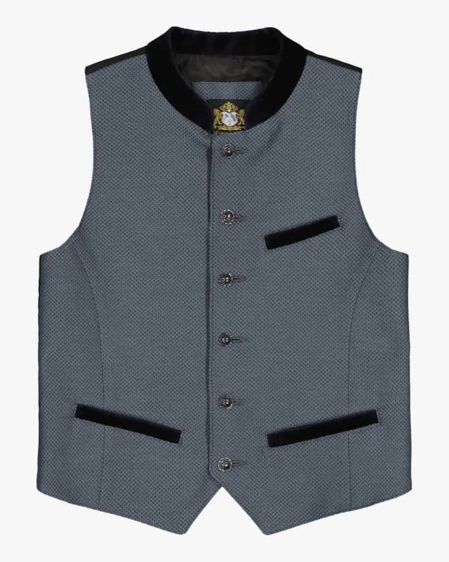 Tim Trachtenweste für Jungen von Hammerschmid in Blau, Navy und Schwarz. DieWeste überzeugt dank hochwertigem Baumwoll-Mix mit angenehmem Tragekomfort,während die traditionelle Aufmachung Trachten-Looks für die Kleinen stillvollergänzt.