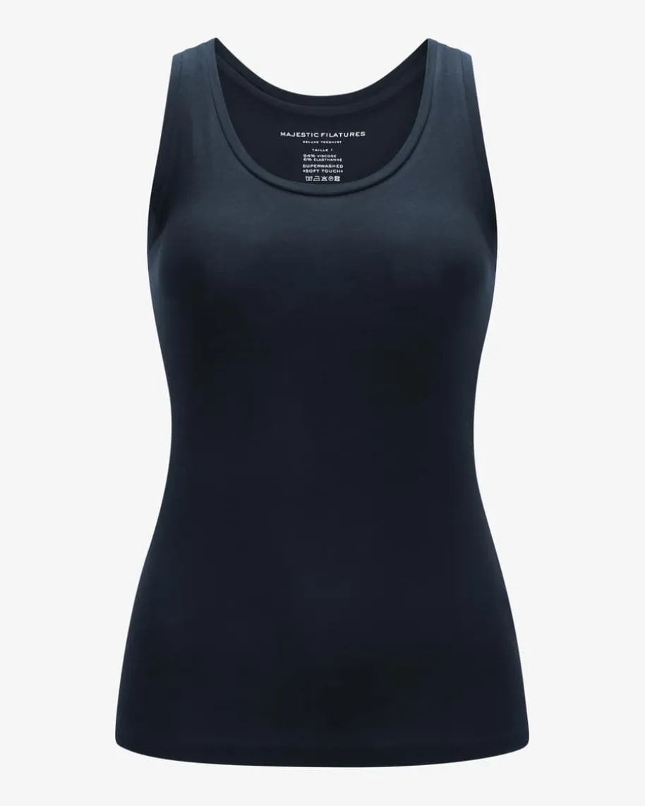 Top für Damen von Majestic Filatures in Nachtblau. Ein perfektes Basic – Dasschlichte Modell überzeugt dank dem elastischen Material-Mix und der weichenSoft-Touch-Qualität mit hohem Tragekomfort.