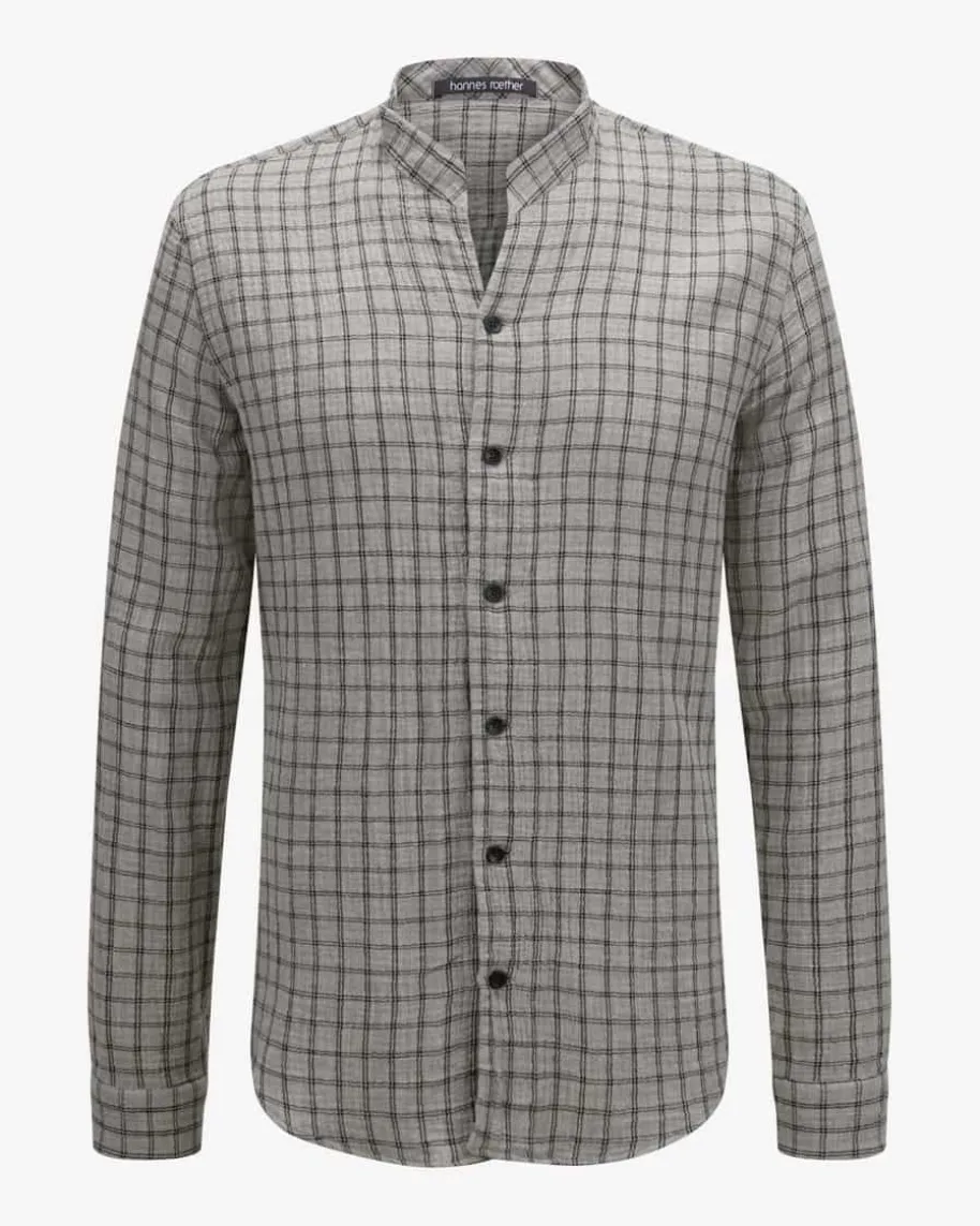 Hemd für Herren von Hannes Roether in Hellgrau und Schwarz. Das Modell inschlichter Schnittführung überzeugt in Musselin-Stoffqualität und beschertangenehme Tragemomente, während das Karo-Dessin und die klassischen Details denGesamt-Look stimmig abrunden.