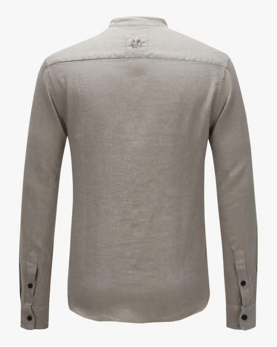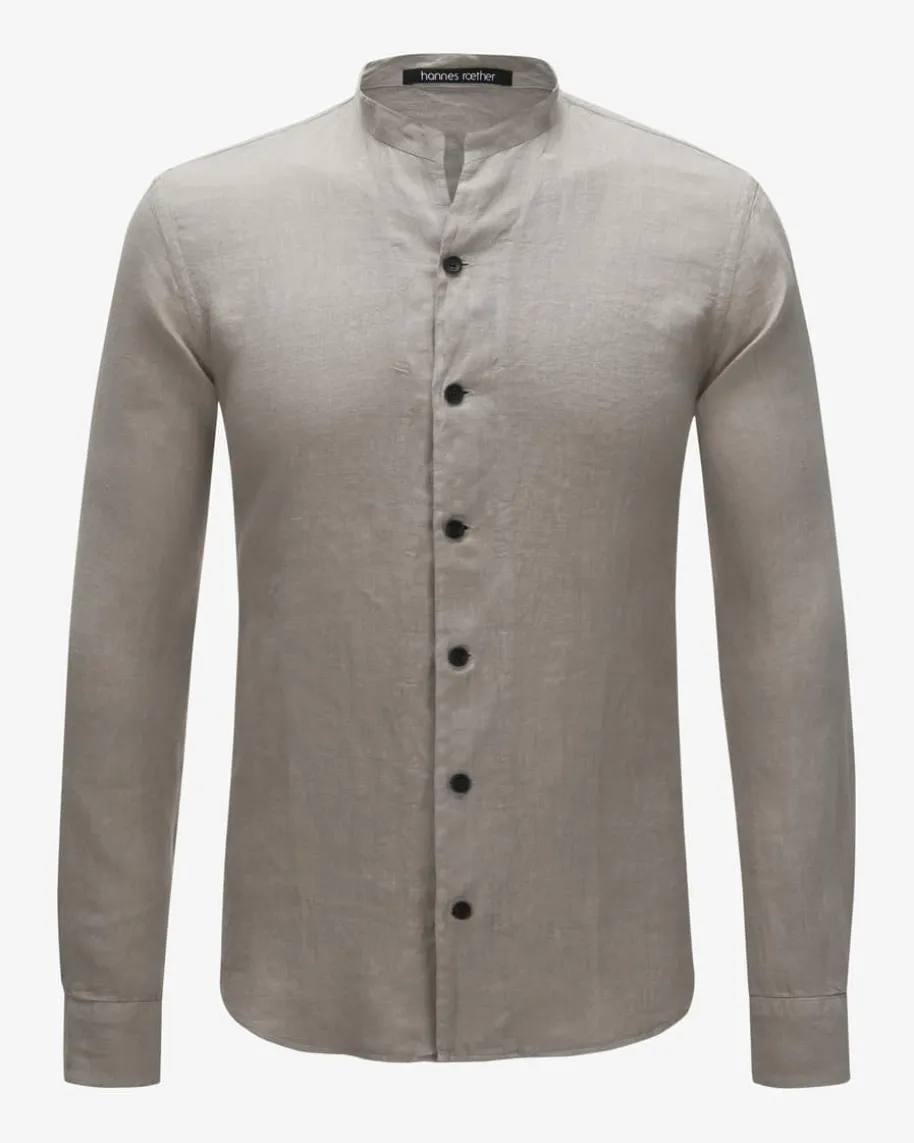 Leinenhemd für Herren von Hannes Roether in Taupe. Das Modell besticht durch dieluftig-leichte Leinen-Qualität, während kontrastierende Knöpfe einen modernenTouch verleihen.