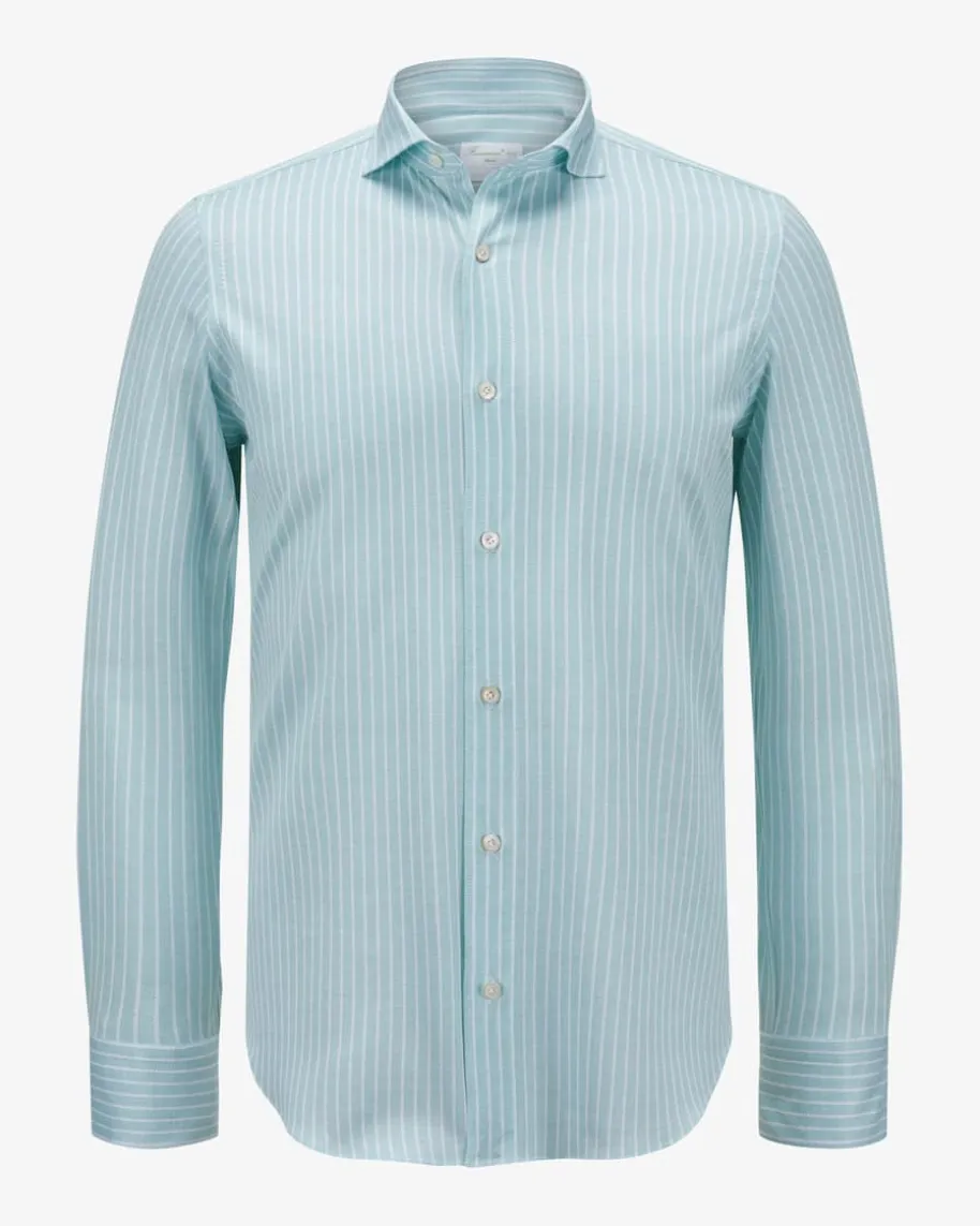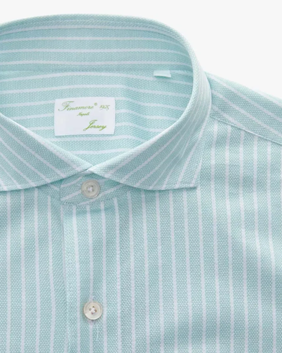 Toronto Achille Jerseyhemd für Herren von Finamore 1925 inMint und Ecru. Das zeitloseModell aus angenehmer Jersey-Qualität erhält dank derPiquée-Qualität einesportive Note, während klassische Details einen modischenAlltags-oder Office-Favoriten kreieren.