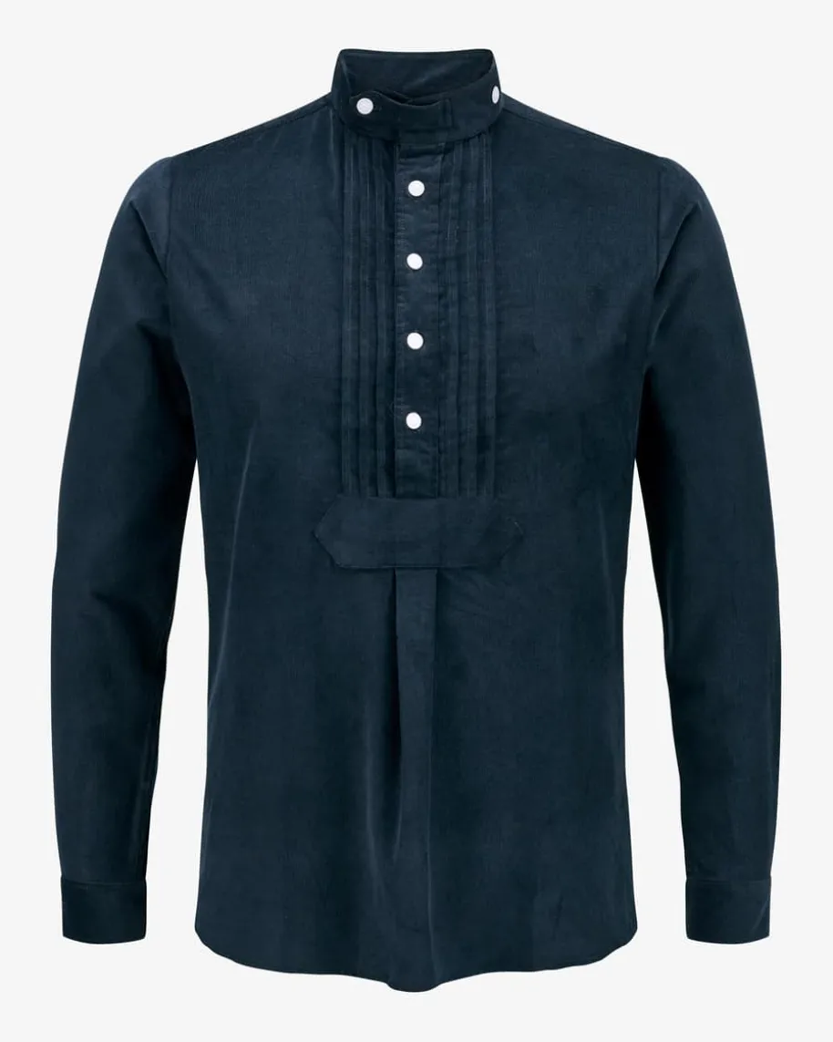 Trachten-Cordhemd Schmal für Herren von Hund Sans scho in Dunkelblau. Die beidenMünchner Freunde gründeten ihr Label um zeitgemäße Trachtenhemden mit demgewissen Etwas zu entwerfen, die leicht zu tragen sind und auf jedemOktoberfest- oder Volksfest-Besuch hohen Tragekomfort bieten. Dieses Pfoad-Modell besticht durch stilvolle Biesen-Details entlang der Knopfleiste, währenddie feine Cord-Qualität einen modernen Charakter verleiht.