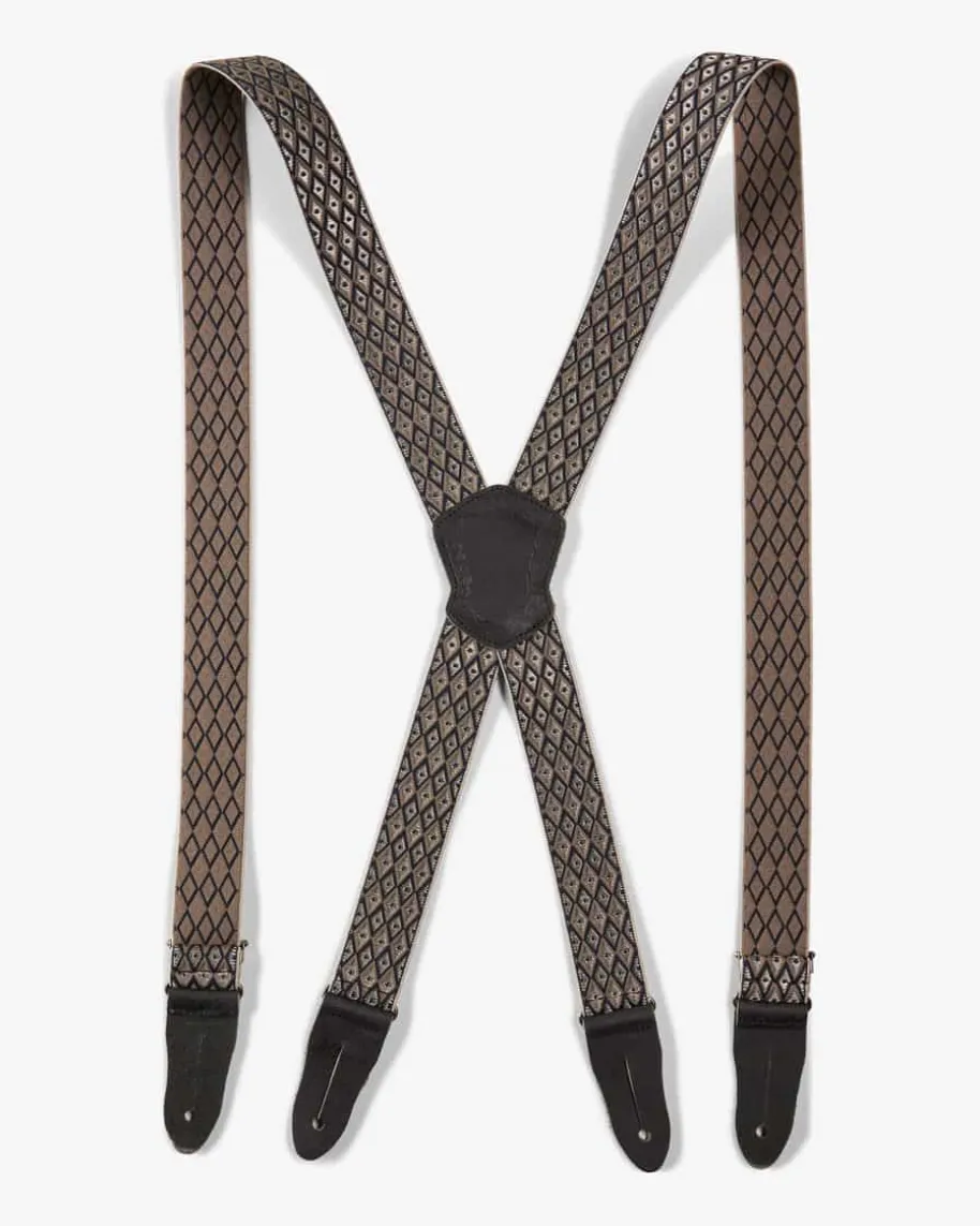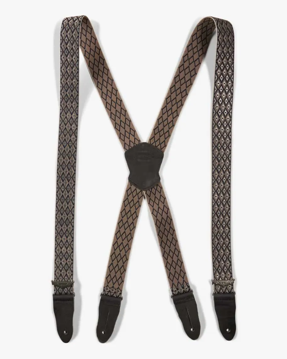 Trachten-Hosenträger für Herren von Töpfer in Hellbraun, Navy und Schwarz.Verleihen Sie Ihrem Trachten-Look dank der längenverstellbaren Hosenträger mitrustikalen Leder-Elementen eine einzigartige Note. Stilvolle Schließen inVerbindung mit originellem Rautenmuster runden das Gesamtbild mit traditionellemCharme ab.