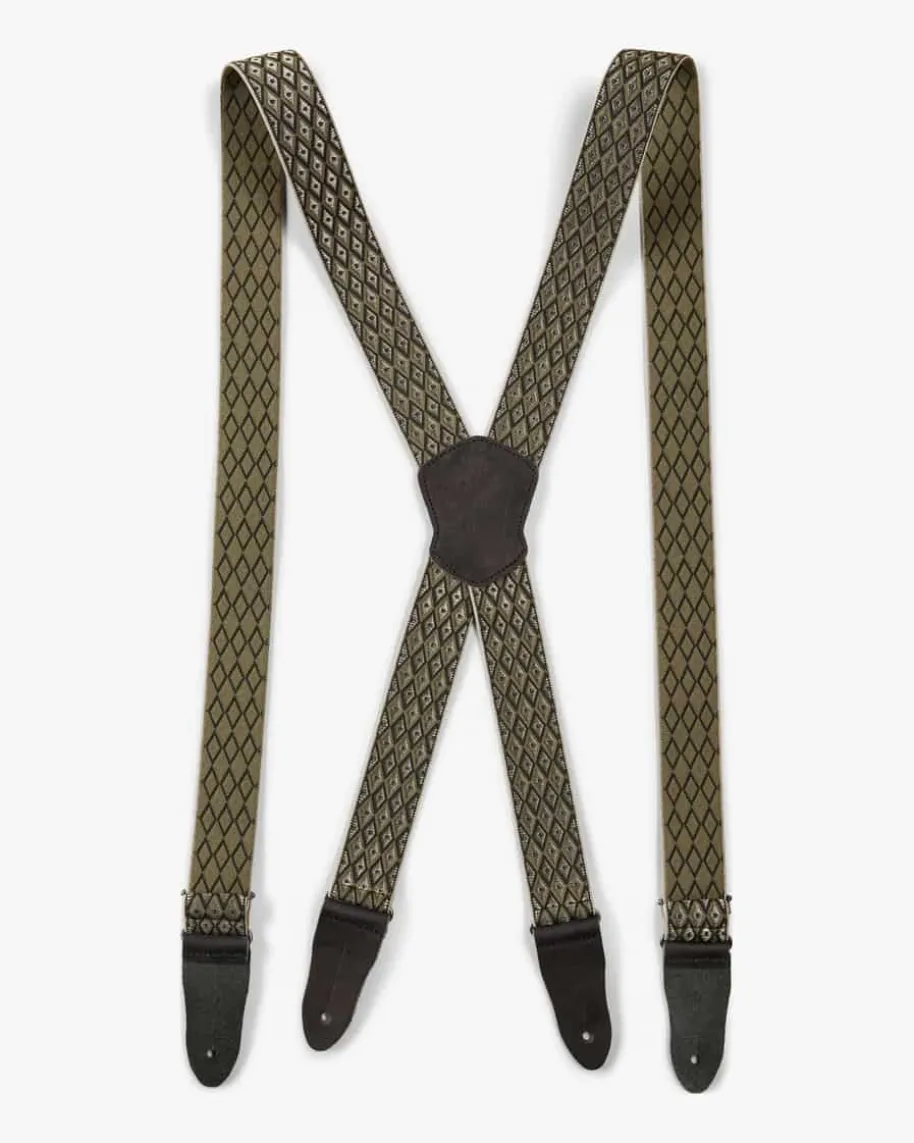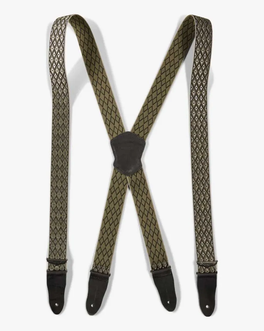 Trachten-Hosenträger für Herren von Töpfer in Khaki, Oliv und Schwarz. VerleihenSie Ihrem Trachten-Look dank der längenverstellbaren Hosenträger mit rustikalenLeder-Elementen eine einzigartige Note. Stilvolle Schließen in Verbindung mitoriginellem Rautenmuster runden das Gesamtbild mit traditionellem Charme ab.