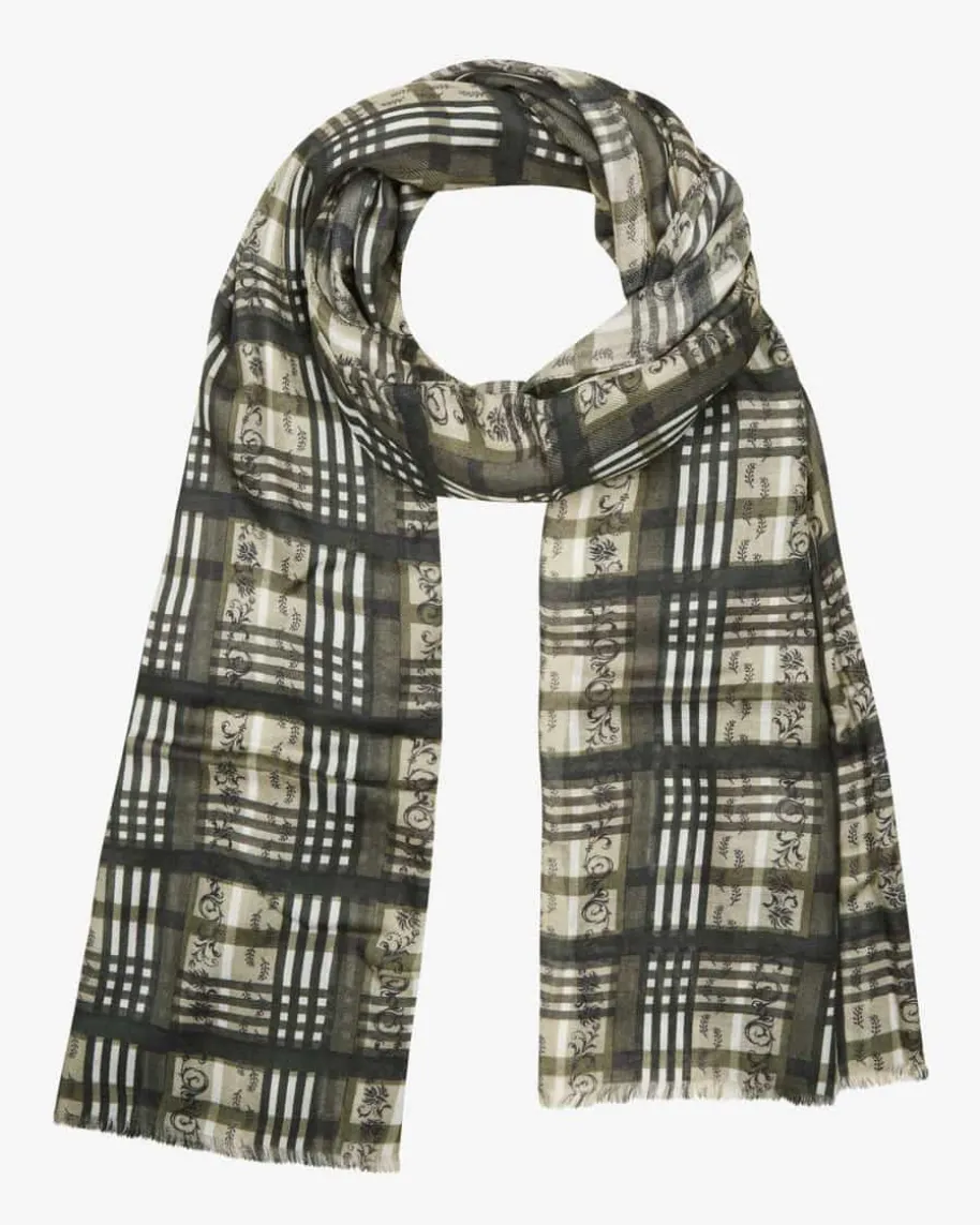 Trachten-Schal für Herren von Luise Steiner in Dunkeloliv, Schilf und Weiß.Während die feine Material-Verarbeitung für eine softe Haptik sorgt, wird durchdas stilvolle Karo-Dessin zusammen mit den zarten Fransen-Details ein charmantesAccessoire für modische Trachten-Looks geschaffen.