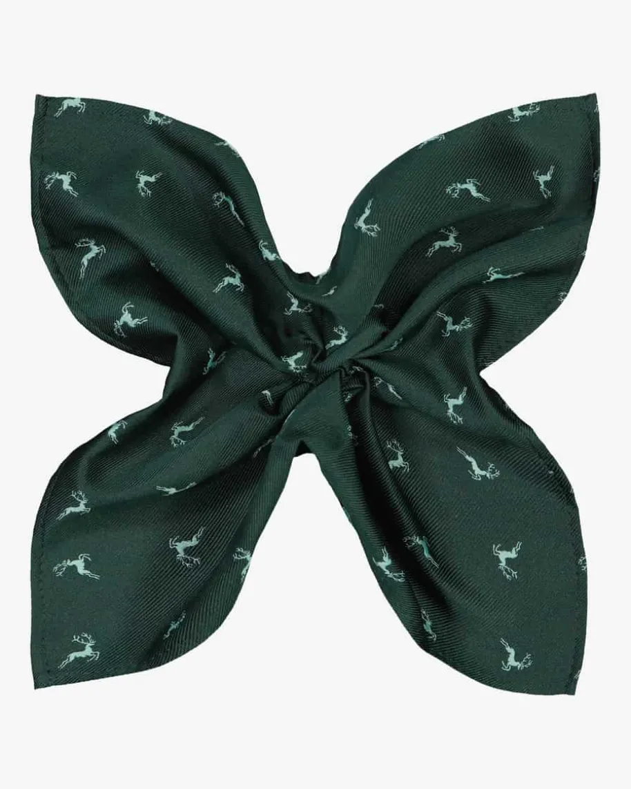 Trachten-Seiden-Einstecktuch für Herren von Luise Steiner in Dunkelgrün.Erstklassige Verarbeitung und ein traditionelles Design mit Hirschen zeichnendas Modell aus. Die Seiden-Qualität verleiht zudem einen dezenten Glanz.