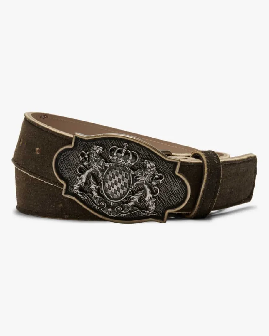 Trachtengürtel für Herren von Töpfer in Ahorn. Handgefertigt in Bayern und inzweilagiger Leder-Verarbeitung, präsentiert sich der Gürtel in rustikalerAufmachung. Eine traditionelle Note verleiht die markante Metallschließe mitWappen sowie die klassische Farbgebung.