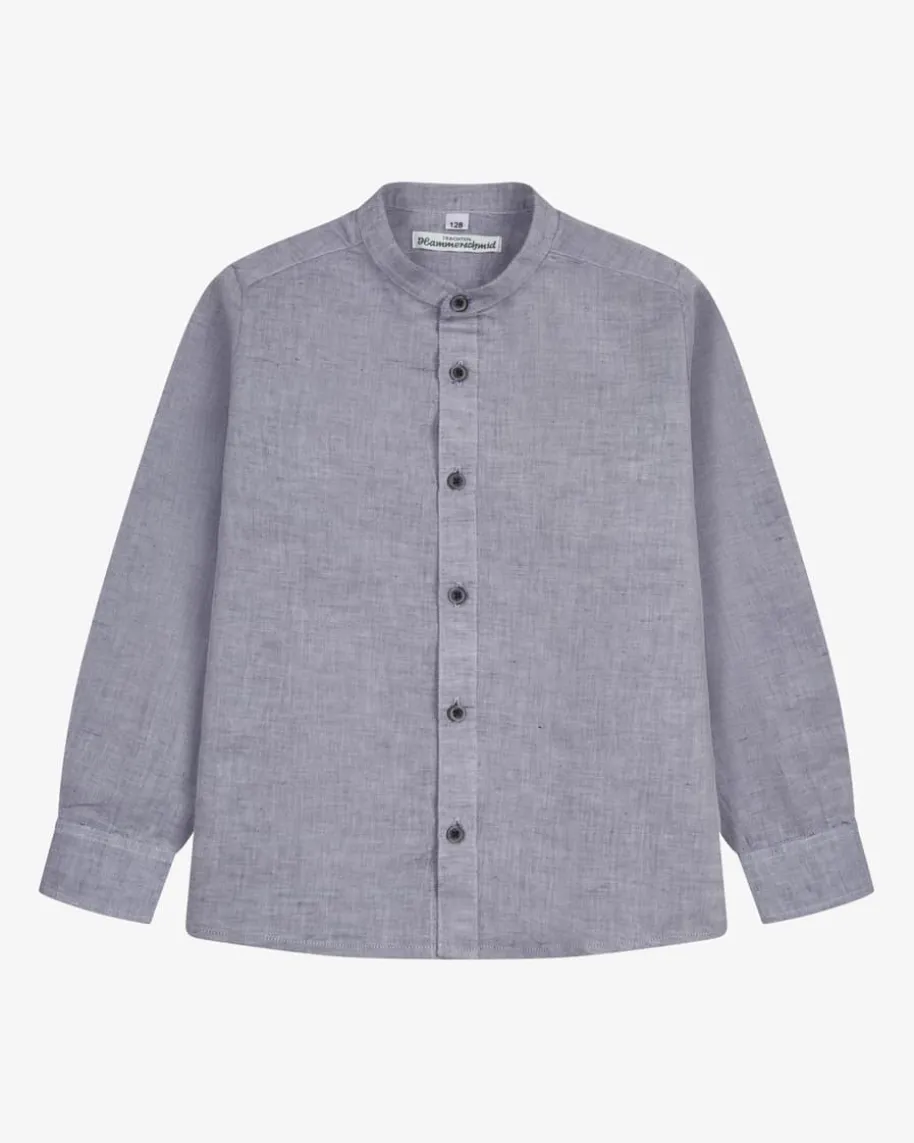 Trachtenhemd für Jungen von Hammerschmid in Blau. Das Modell in hochwertigerLeinen-Baumwoll-Qualität überzeugt mit angenehmen Tragemomenten, während diemelierte Aufmachung und klassischen Details einen zeitlosen Trachten-Begleiterkreieren.