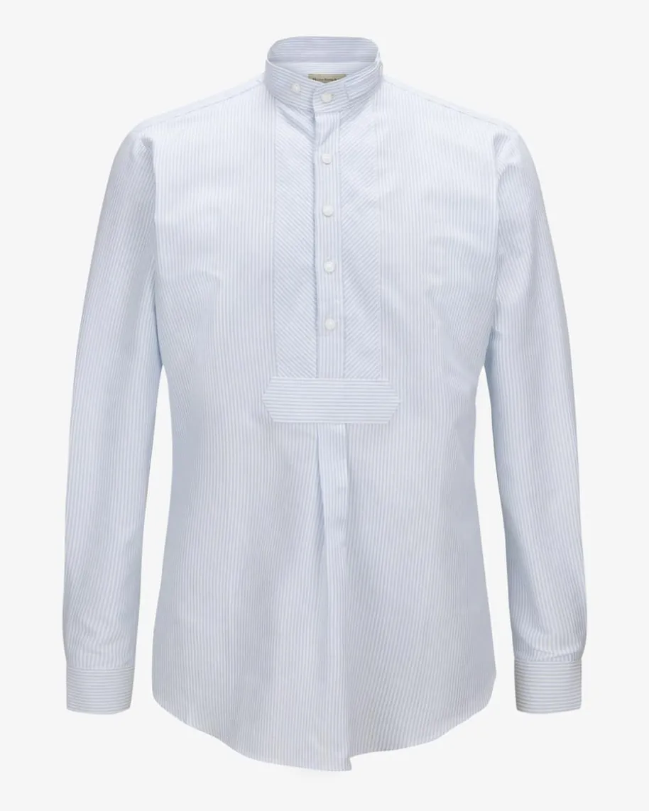 Trachtenhemd für Herren von Hund Sans Scho in Hellblau und Weiß. Die beidenMünchner Freunde gründeten ihr Label um zeitgemäße Trachtenhemden mit demgewissen Etwas zu entwerfen, die leicht zu tragen sind und auf jedemOktoberfest- oder Volksfest-Besuch hohen Tragekomfort bieten. Dieses Modellbesticht durch das raffinierte Streifen-Dessin, während klassische Details denCharakter des Designs perfekt vollenden.