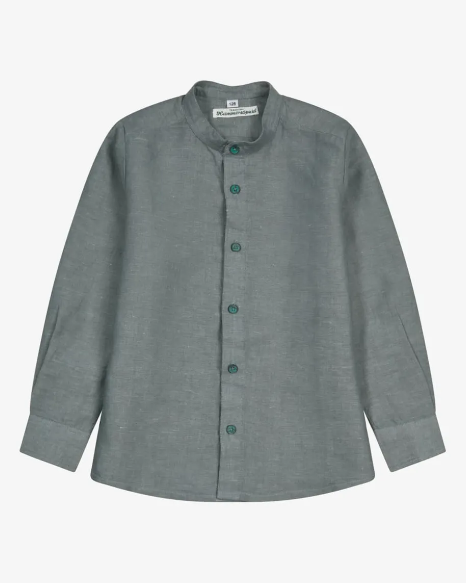 Trachtenhemd für Jungen von Hammerschmid in Dunkelgrün. Das Modell inhochwertiger Leinen-Baumwoll-Qualität überzeugt mit angenehmen Tragemomenten,während die melierte Aufmachung und klassischen Details einen zeitlosenTrachten-Begleiter kreieren.
