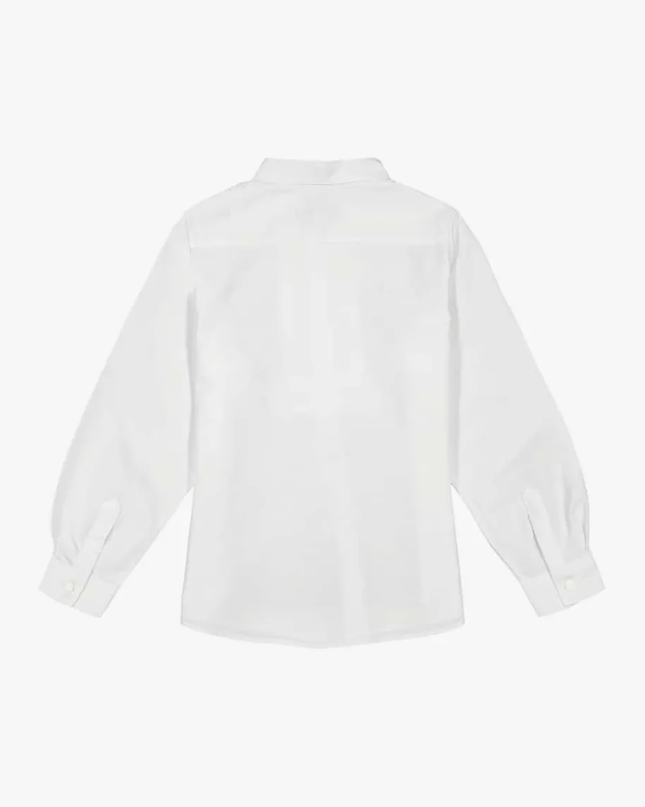 Jungen-Trachtenhemd von Hund sans scho in Weiß. Das traditionelle Hemd ausangenehmer Baumwolle überzeugt dank verkürzter Knopfleiste, tonalen Knöpfensowie dem Stehkragen als stilvoller Blickfang für modische Mini-Trachten-Outfits.