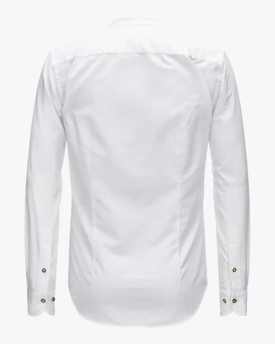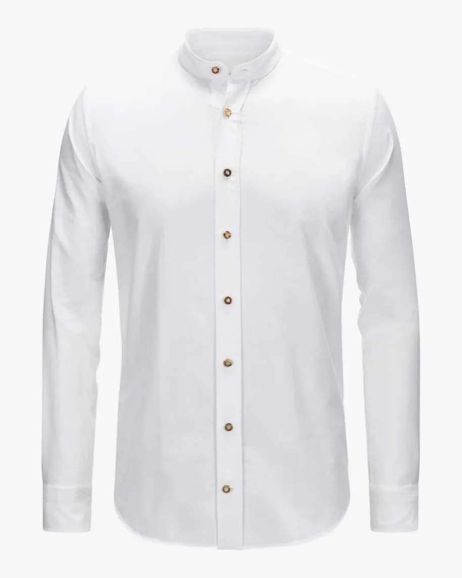 Hansi Trachtenhemd für Herren von DU4 in Weiß. Zeitlos und traditionell zugleichbegeistert das tailliert geschnittene Modell aus hochwertiger Baumwolle.Elemente wie ein kurzer Stehkragen, die aufgesetzte Knopfleiste sowie variableSport-Manschetten setzen klassische Akzente, während Hornknöpfe das Gesamtbildgekonnt abrunden.