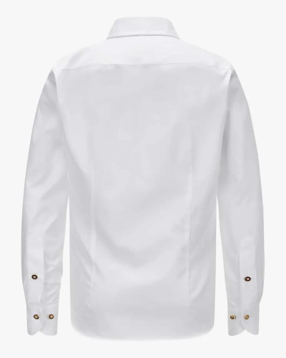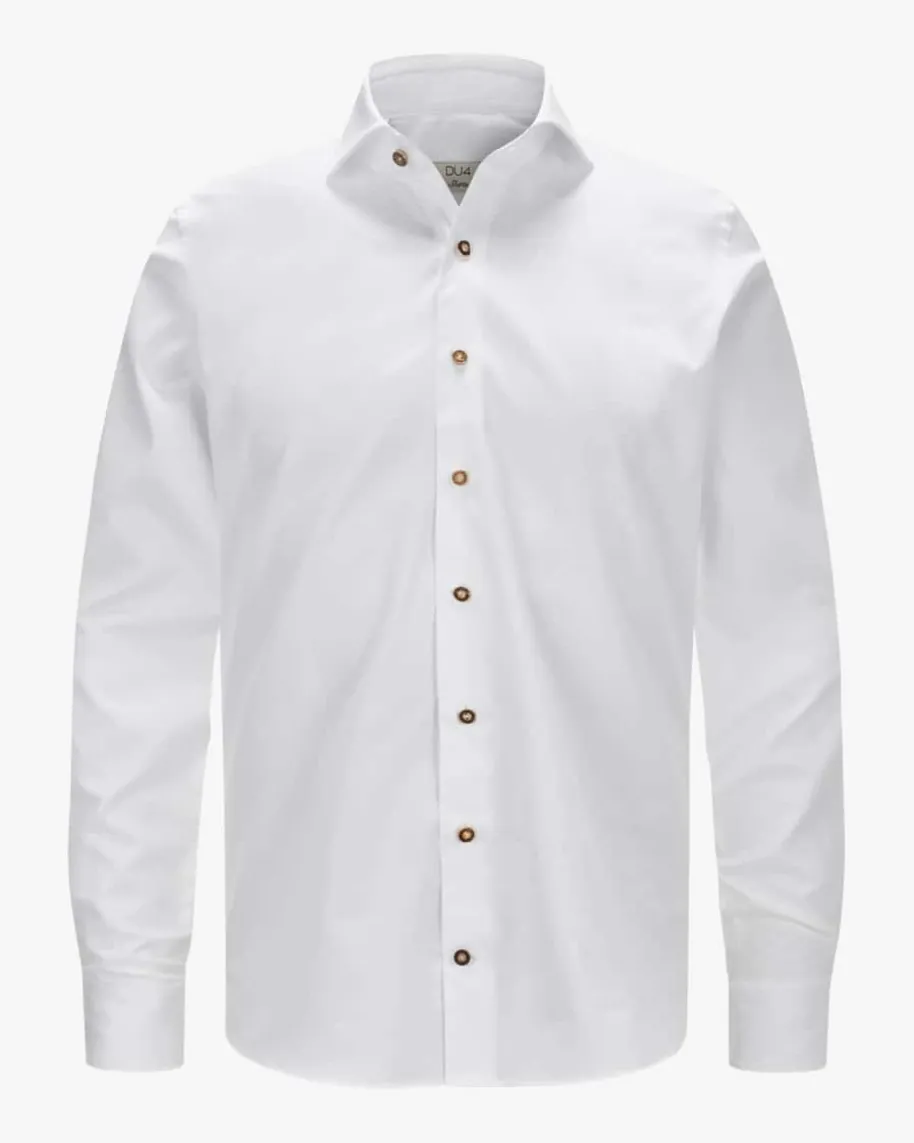 Trachtenhemd für Herren von DU4 in Weiß. Das taillierte Modell aus angenehmerBaumwolle erweist sich als stilvoller Partner für traditionelle Looks, währendklassische Details sowie rustikale Hornknöpfe das Gesamtbild gekonnt in Szenesetzen.