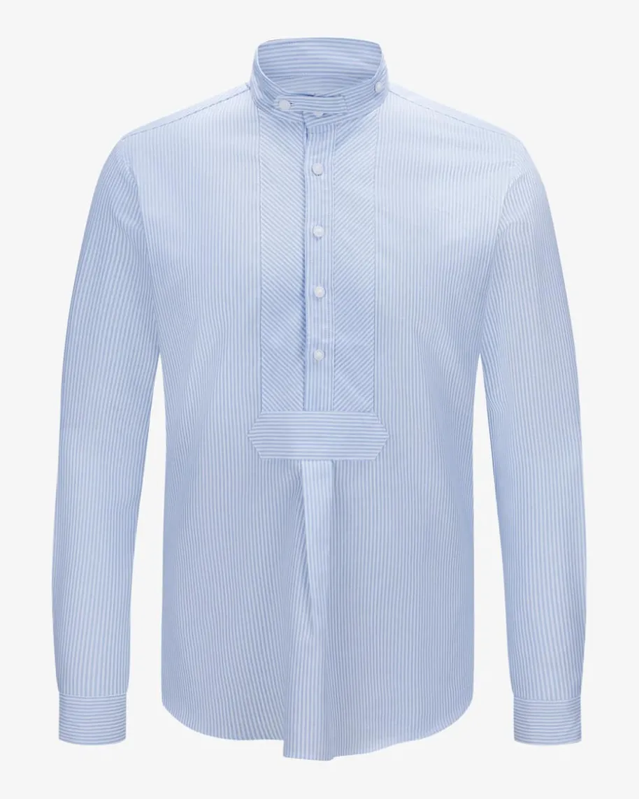 Trachtenhemd Schmal für Herren von Hund Sans Scho in Hellblau und Weiß. Diebeiden Münchner Freunde gründeten ihr Label um zeitgemäße Trachtenhemden mit demgewissen Etwas zu entwerfen, die leicht zu tragen sind und auf jedemOktoberfest- oder Volksfest-Besuch hohen Tragekomfort bieten. Dieses Modellbesticht durch das raffinierte Streifen-Dessin, während klassische Details denCharakter des Designs perfekt vollenden.
