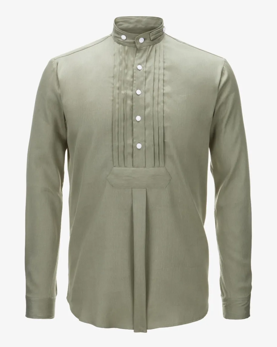 Trachtenhemd Schmal für Herren von Hund Sans Scho in Oliv.Die beidenMünchner Freunde gründeten ihr Label um zeitgemäßeTrachtenhemden mit demgewissen Etwas zu entwerfen, die leicht zu tragen sind undauf jedemOktoberfest- oder Volksfest-Besuch hohen Tragekomfortbieten. Dieses Modellbesticht durch stilvolle Biesen-Details entlang derKnopfleiste, während dieleichte Qualität angenehmen Tragekomfort verspricht.