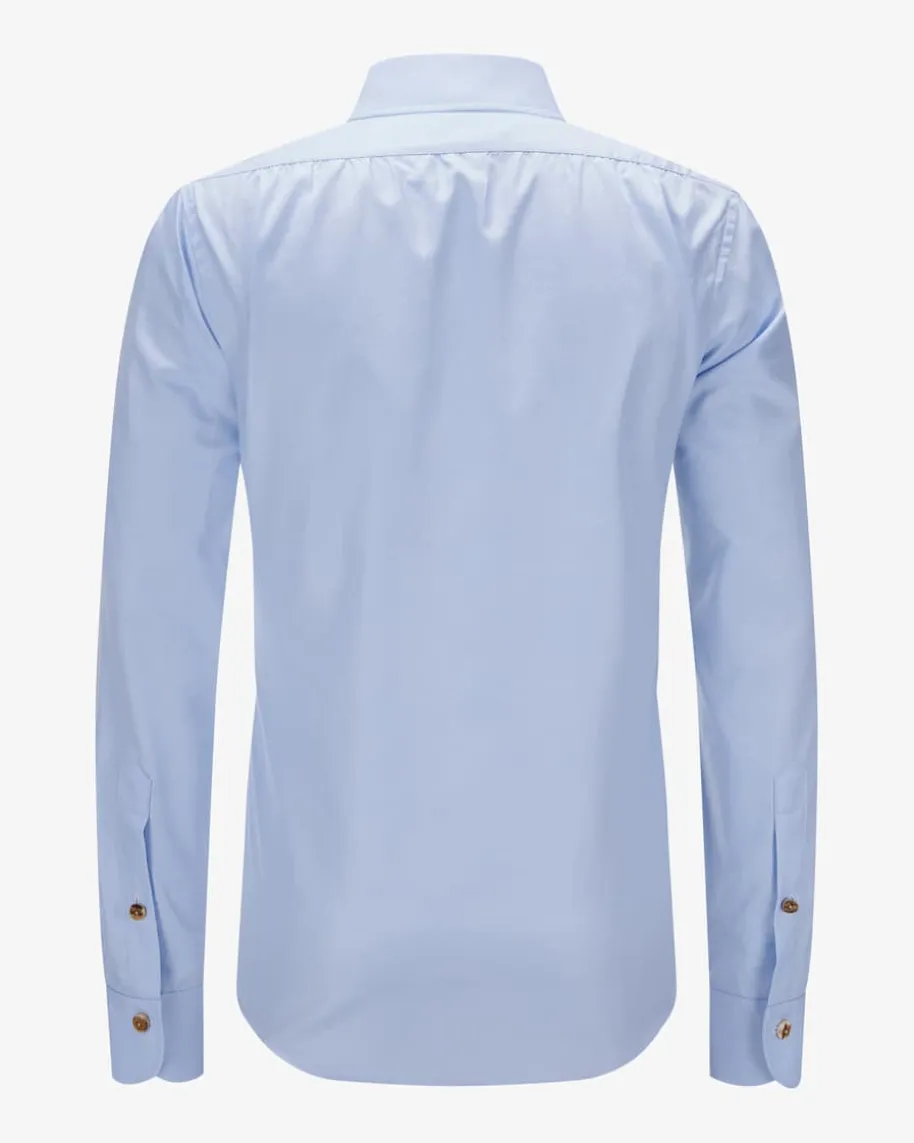 Trachtenhemd Slim Fit für Herren von Emanuel Berg in Hellblau. Das Modellüberzeugt durch die schmale Passform und die feine Webqualität aus angenehmerBaumwolle, während rustikale Knöpfe in Horn-Optik besondere Akzente setzen.