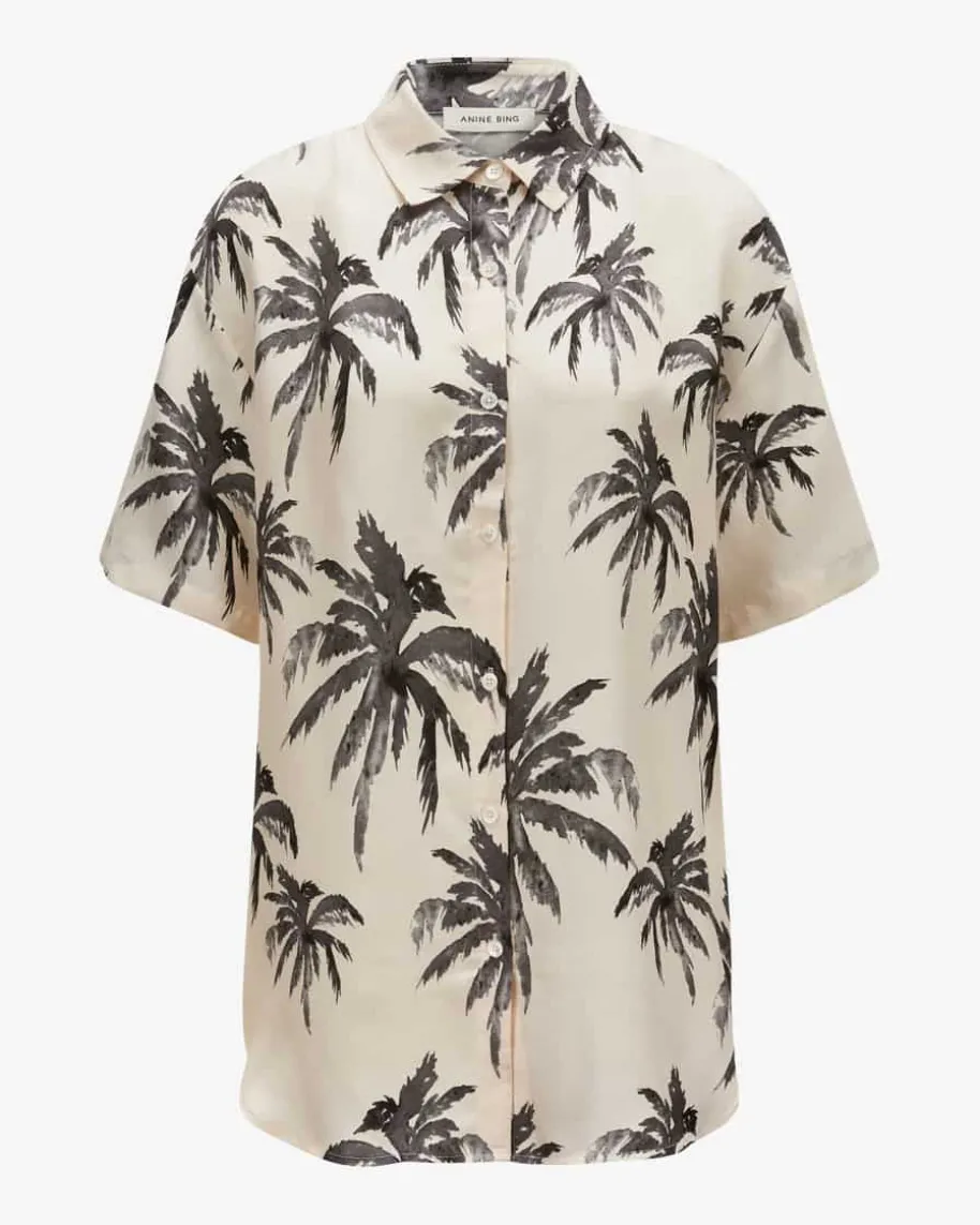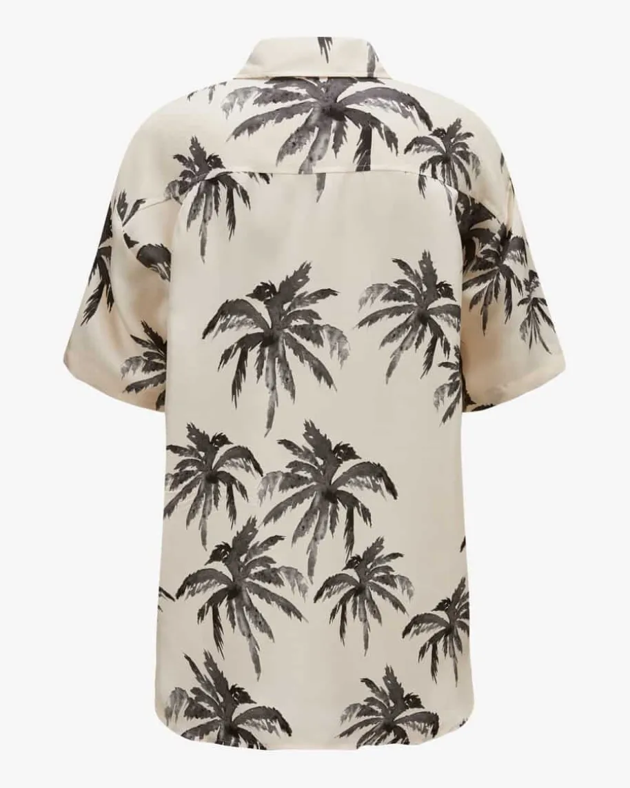 Tristan Bluse für Damen von Anine Bing in Ecru und Anthrazit. Das Modellpräsentiert sich mit legerem Oversize-Fit, der zusammen mit der leichtenMaterial-Qualität für einen hohen Tragekomfort sorgt. Der kreative Palmen-Printsetzt zudem besondere Akzente.