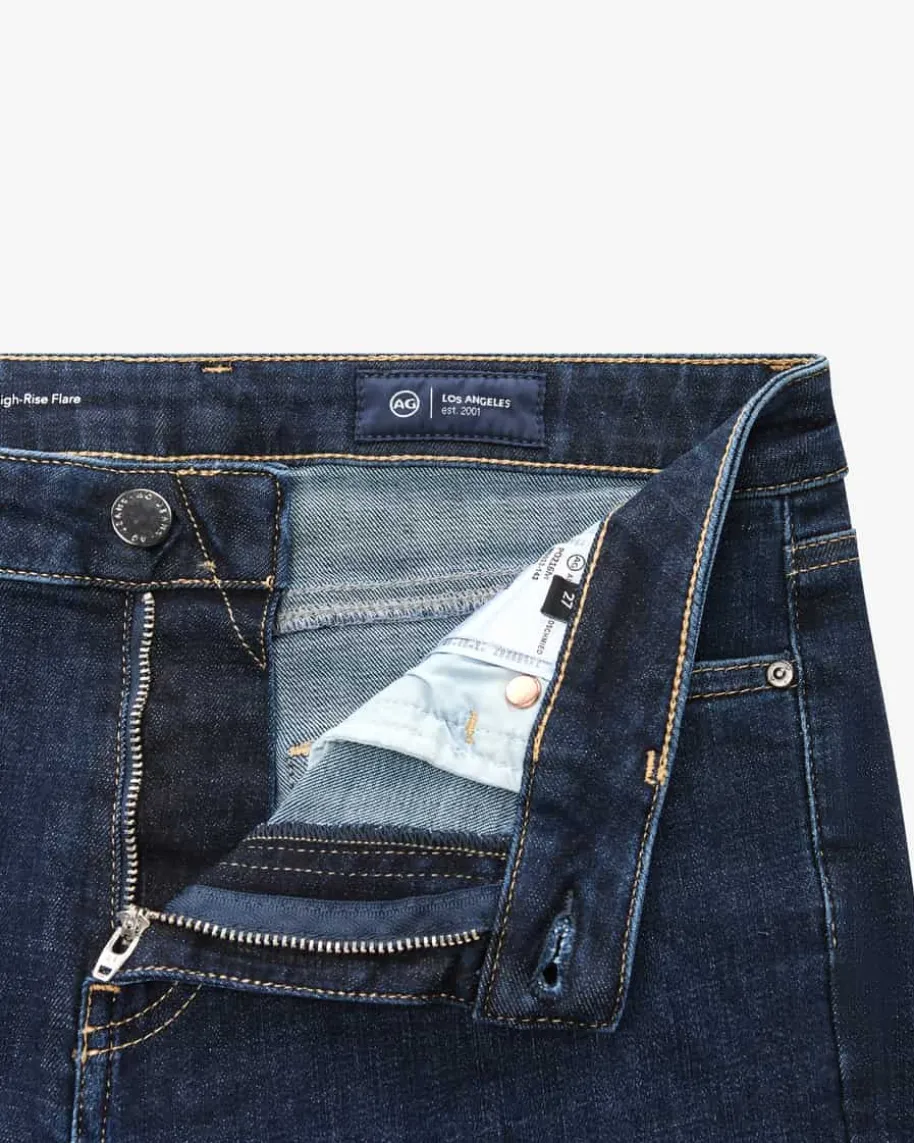 Tropea Jeans High Rise Flare für Damen von AG Jeans in Dunkelblau. Das Modellverspricht dank dem elastischen Material-Mix mit Lyocell-Anteil einen besondershohen Tragekomfort, während das weit ausgestellte Bein sowie der hohe Bund einefeminine Silhouette zaubern.