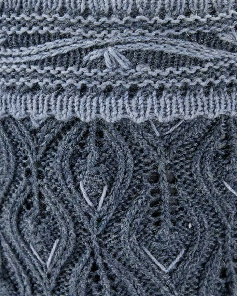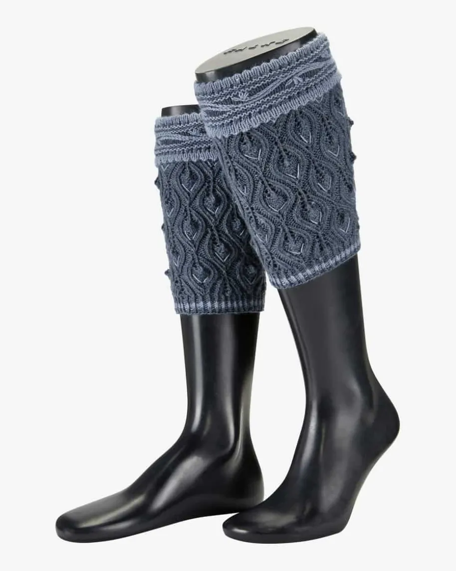 Tropfen Handstrick-Loferl für Herren von Pezzo in Rauchblauund Hellblau. Mit raffiniertemStrickmuster sowie breitem Umschlag präsentiert sich dasModell aus feinem Woll-Mix mit traditionellem Charme, während die elastischeQualität angenehmenTragekomfort verspricht.