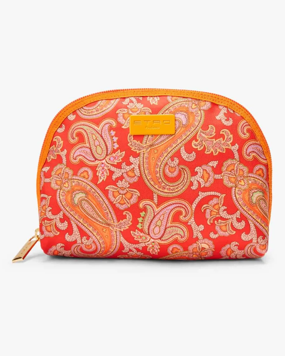 Kulturtasche von Etro in Rot, Orange und Bunt. Mit diesem Modell hat dasLabel ein praktisches und zugleich stilvolles Essential geschaffen, das sich alsidealer Begleiter für Ihren Alltag oder auf Reisen erweist. Zugleich setzen daslabeltypische Paisley-Muster sowie die Logo-Applikation das Gesamtbild gekonntin Szene.