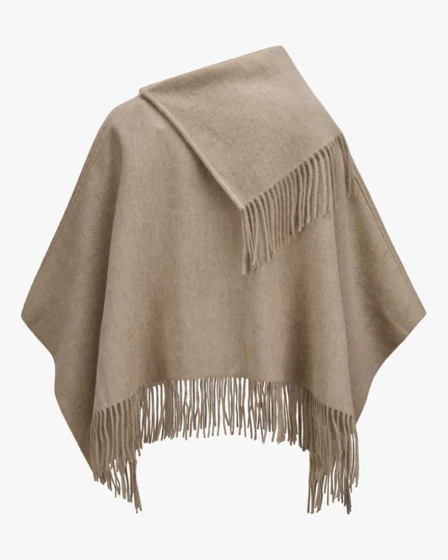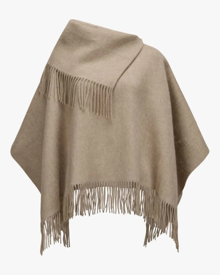 Turtma Poncho für Damen von By Malene Birger in Beige. Dank der hochwertigenWoll-Verarbeitung besticht das Modell mit besonders weicher Haptik, während derraffinierte Umlegekragen und Fransen-Details einen originellen Country-Stylekreieren.