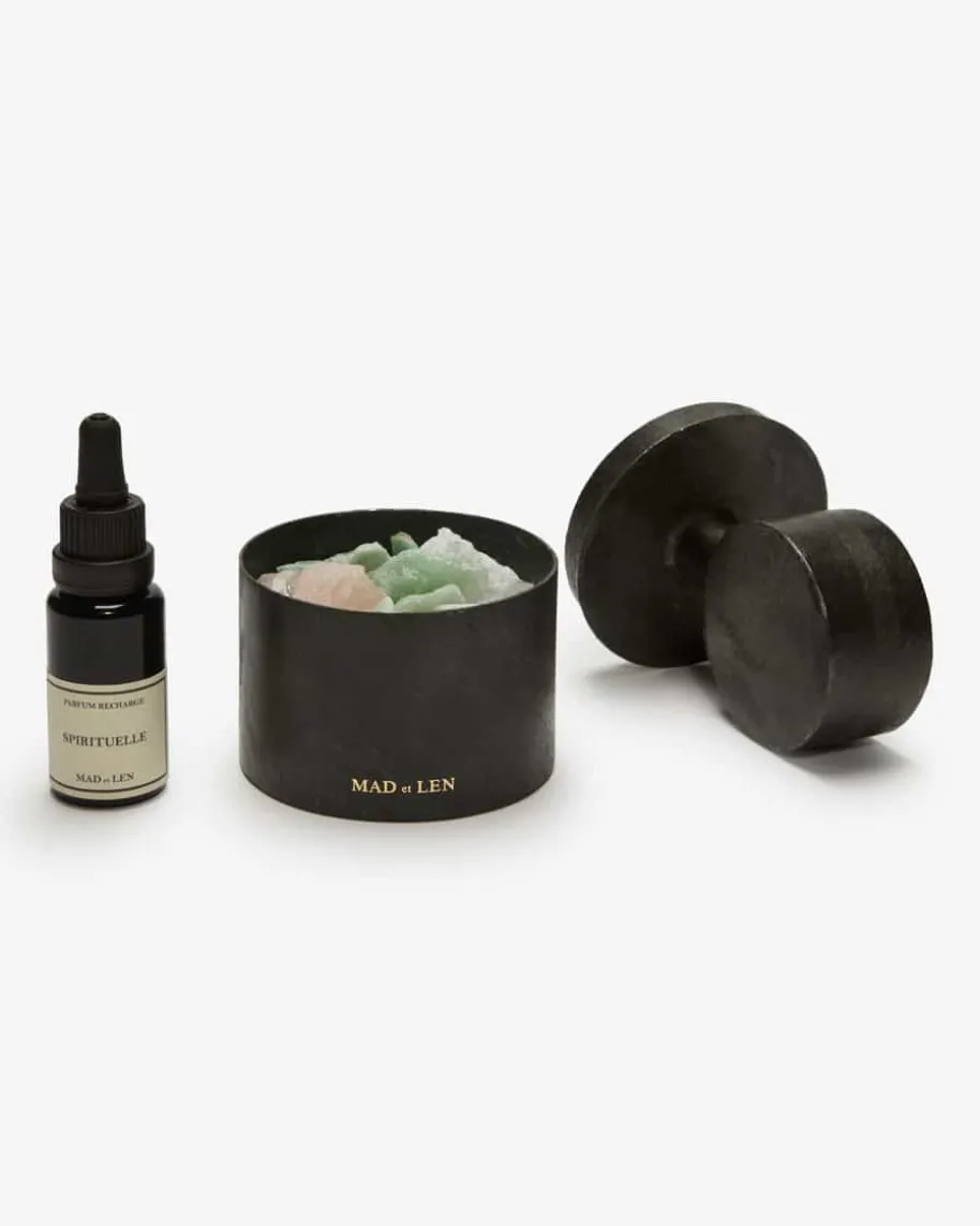 Tutti Frutti Mini Pot Pourri Totem von Mad et Len. Handgefertigt in Frankreich –Leidenschaft und Handwerk zeichnen das Label aus. Mit diesem handgeschmiedetenGefäß aus 100% geschwärztem Eisen erleben Sie eine sinnliche Verschmelzung vonEdelsteinen und der Kraft des Metalls, die dank dem Duft „Spirituelle“ einwohltuendes Dufterlebnis mit erfrischender Minztee-Note verspricht.
