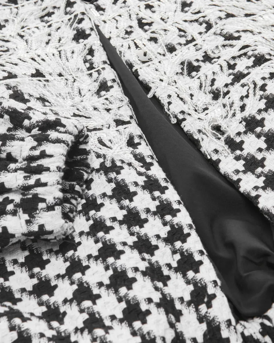 Ulli Ehrlich Blouson für Damen von Sportalm in Weiß und Schwarz. Das Modell mitapplizierten Pailletten-Fransen avanciert zum modischen Highlight, welches jedesOutfit gekonnt in Szene setzt. Während klassische Details und das Hahnentritt-Dessin den Look gekonnt vollenden.