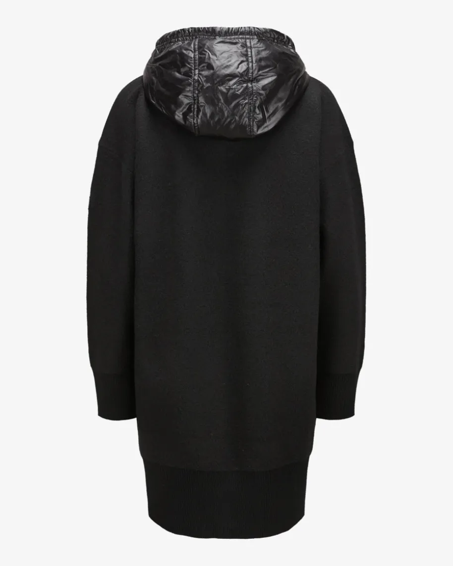 Ulli Ehrlich Strickmantel für Damen von Sportalm in Weiß und Grau. Daslegere Modell zeichnet sich durch die weiche Woll-Verarbeitung mit markantenRippstrick-Bündchen aus, während die changierende Kapuze einen sportivenKontrast schafft.