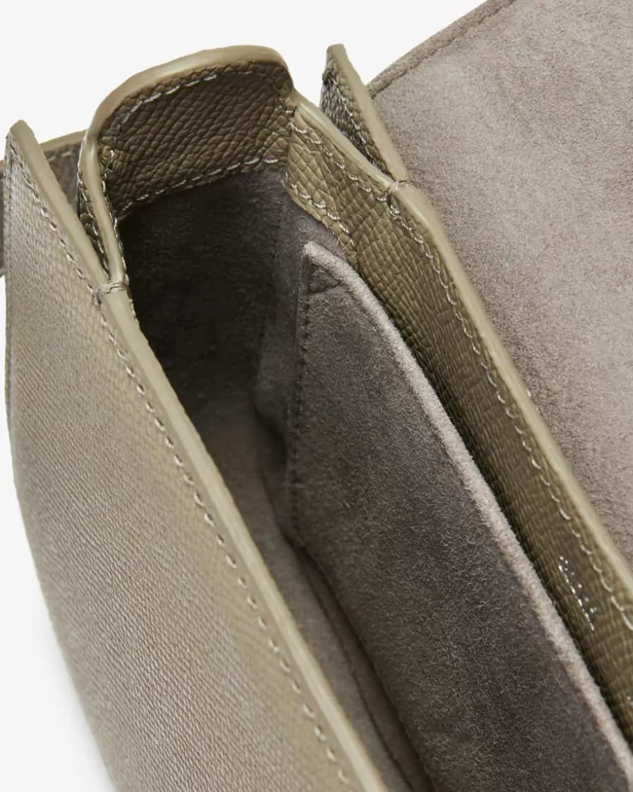 Umhängetasche für Herren von Ami Paris in Taupe. Das Modell überzeugt mithochwertigem, genarbtem Leder und charakteristischem Magnet-Verschluss mitsilberfarbenem Logo-Detail. Derverstellbare Schultergurt rundet denmodischen Look perfekt ab.