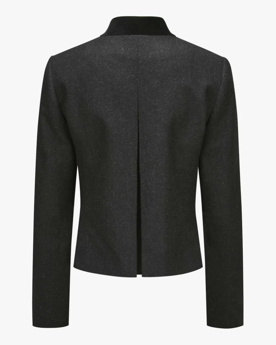 Vaduz Trachtenjacke für Damen von Stajan in Anthrazit und Dunkelgrün. Made inAustria – Aus robuster Merinowolle gefertigt, präsentiert sich das Modell dankweichem Samt-Besatz und doppelreihiger Knopfleiste in stilvoller Aufmachung,während die markanten Hornknöpfe den traditionellen Look gekonnt abrunden.
