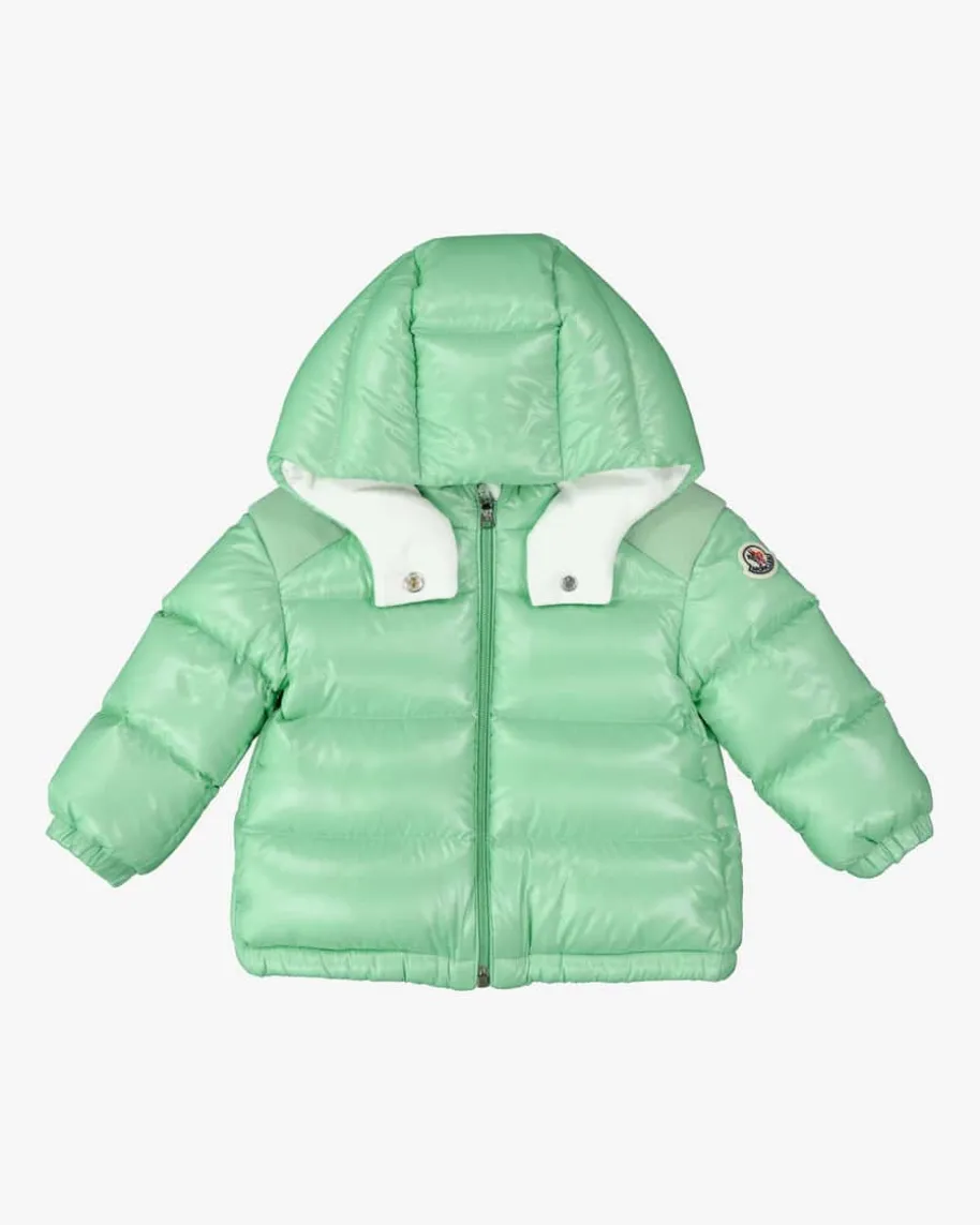 Valya Daunenjacke für Babys von Moncler Enfant in Mint. Das gesteppte Modellüberzeugt durch die wärmende Daunen-Feder-Füllung als perfektes Winter-Essentialfür Ihr Kleines. Die weiche Stoff-Partie auf Schulterhöhe rundet den Lookstilvoll ab.