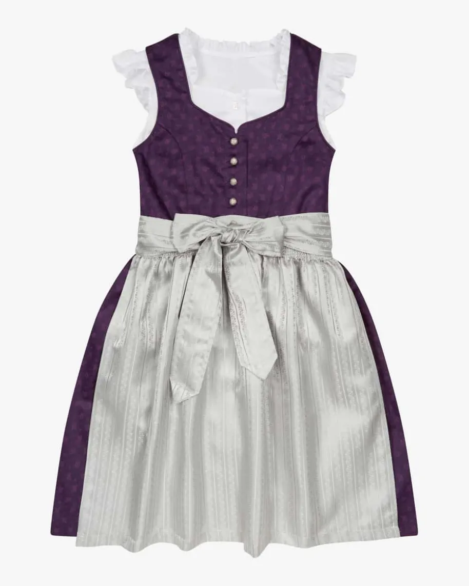 Vera Dirndl mit Bluse und Schürze für Mädchen von LODENFREY in Aubergine undSalbei. Dank der klassischen Schnittführung und der hochwertigen Qualitätbegeistert das Modell mit modernem Charme. Zugleich sorgt der Rock mit Blümchen-Dessin und die changierende Schürze in seidigem Finish für optische Highlights.