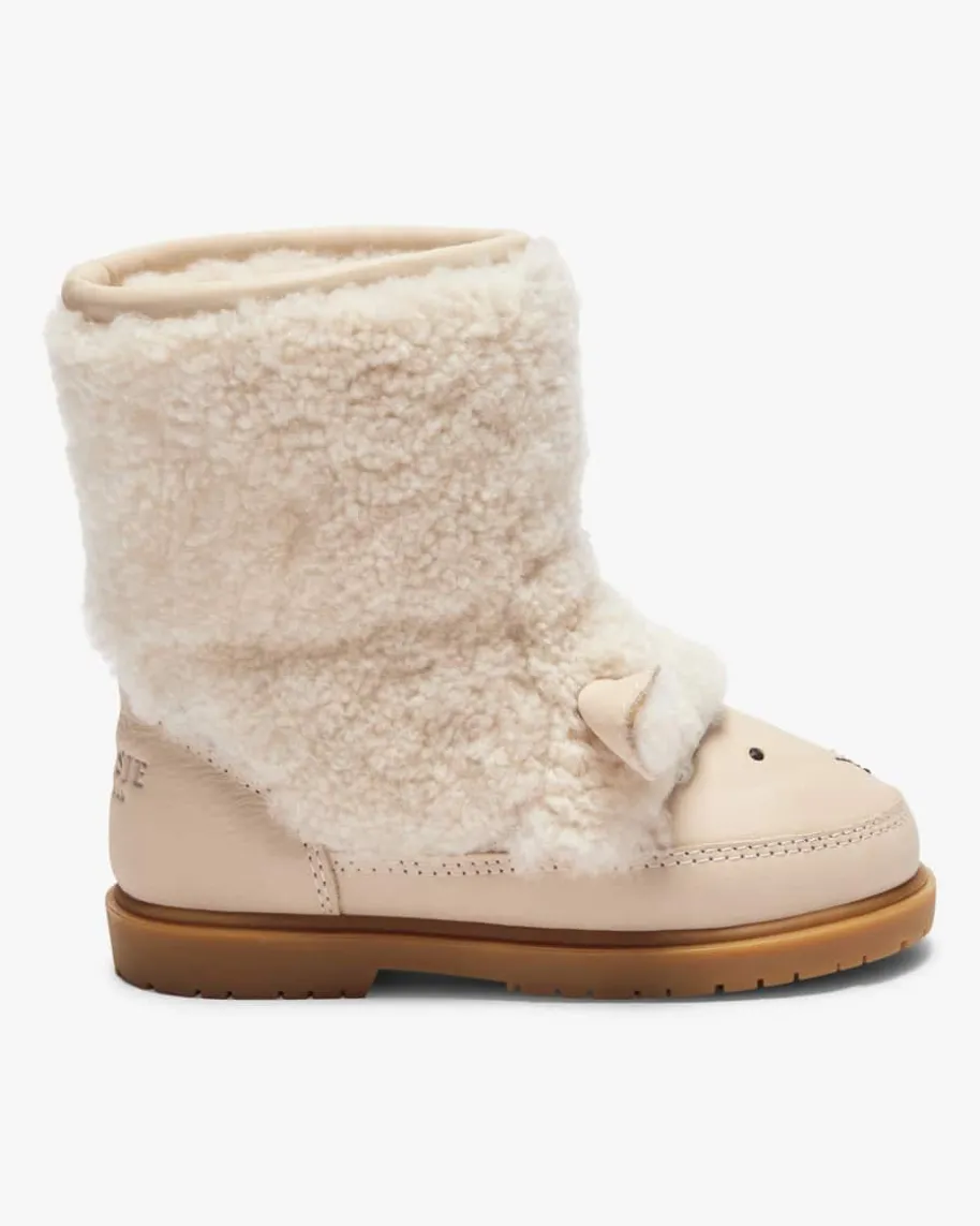 Wadou Lamm Stiefel für Kinder von Donsje in Off-White. Das Modell präsentiertsich dank der raffinierten Lamm-Aufmachung als niedlicher Favorit für IhrenNachwuchs. Die Kombination aus Glattleder und Teddyfell-Optik rundet dasGesamtbild gekonnt ab.