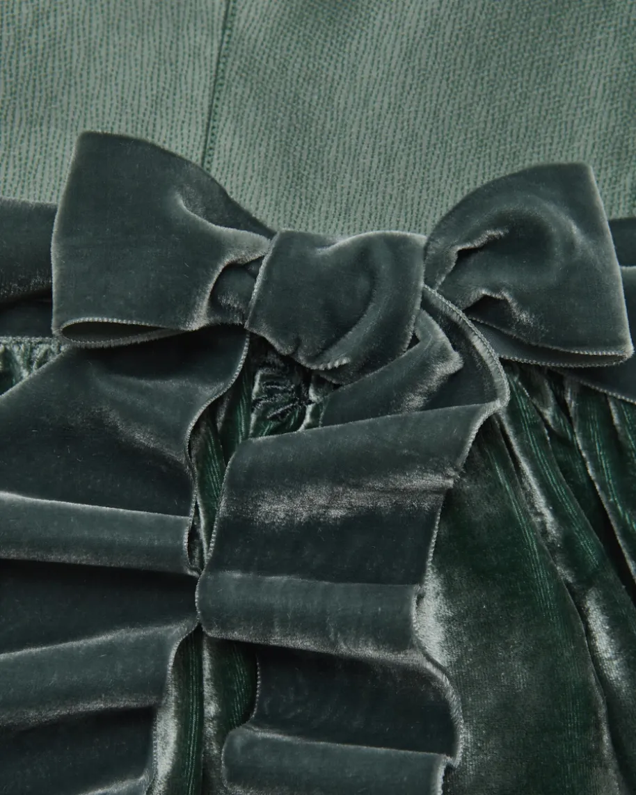 - Weiche Samt-Schürze mit floralen Stickereien