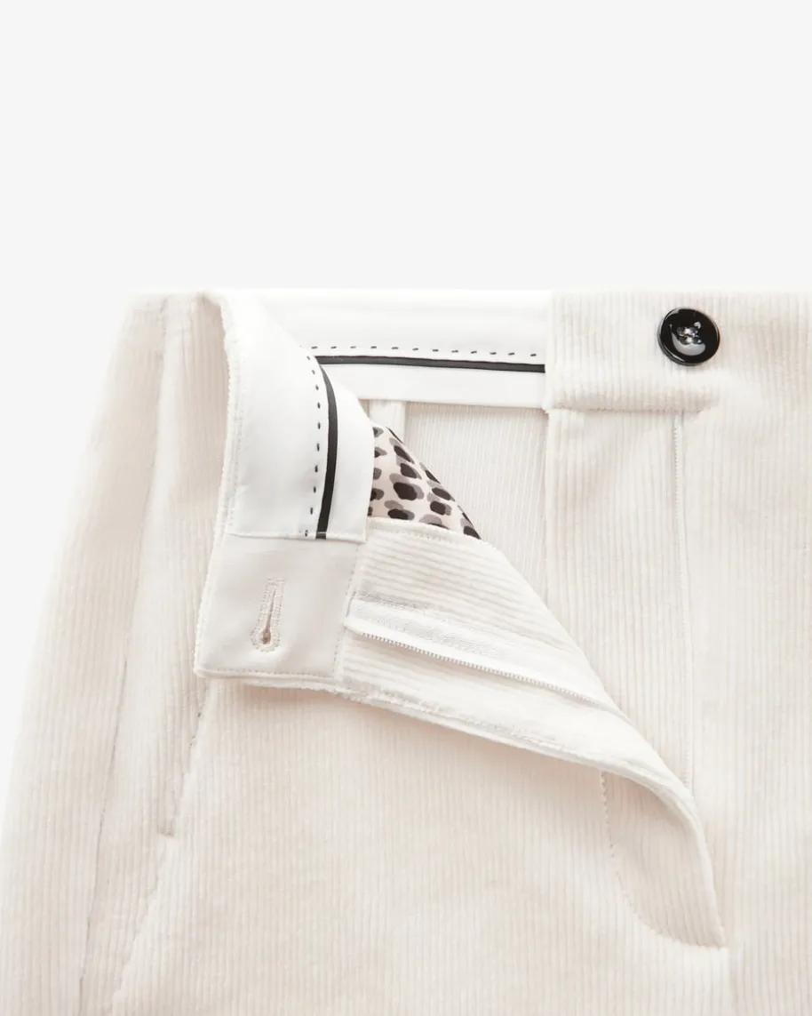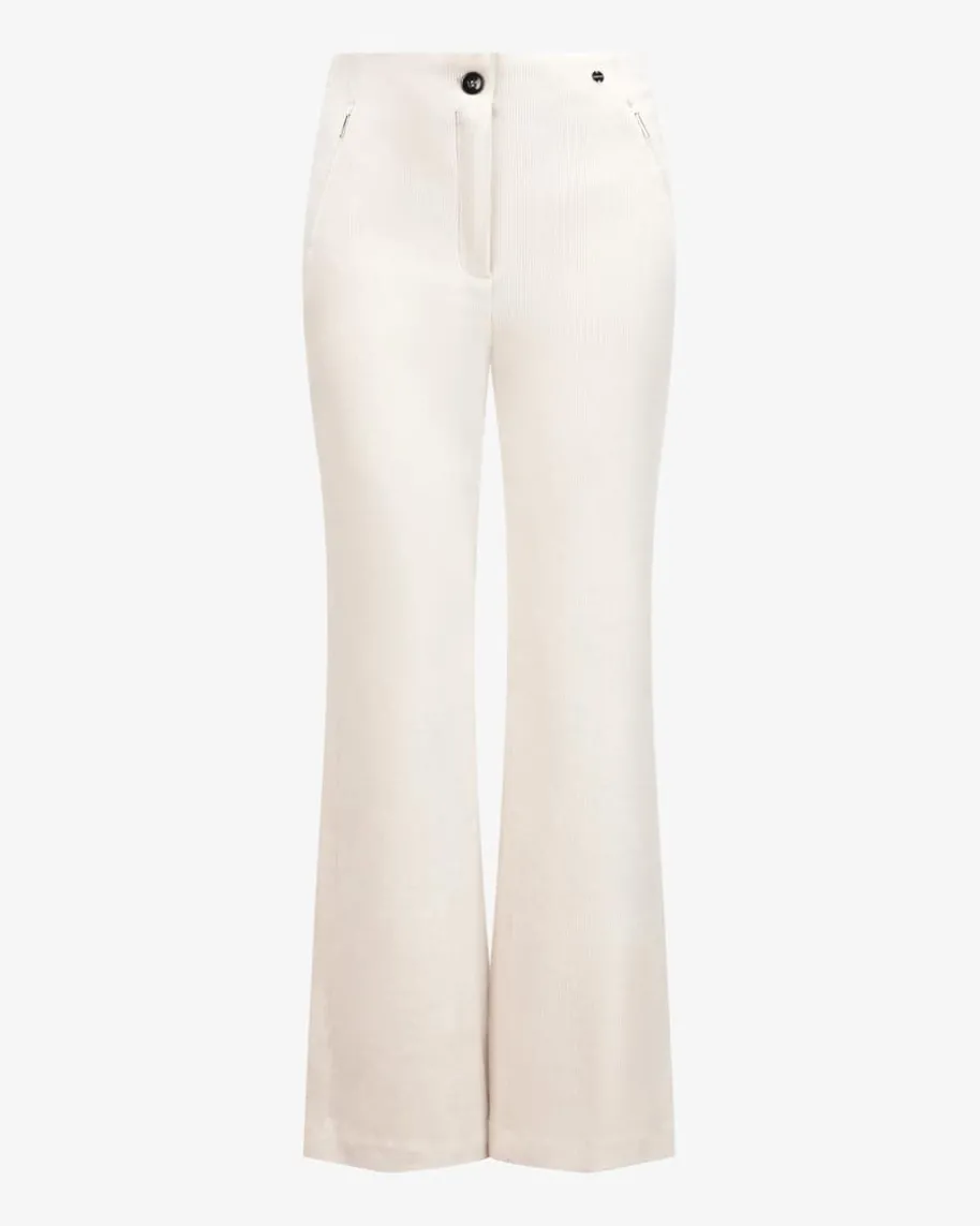 Welkom Cord-Hose Wide Fit High Waist für Damen von Marc Cain in Creme. DasModell in modisch-weitem Schnitt punktet dank elastischem Baumwoll-Mix mit hohemTragekomfort, während die legere Cord-Aufmachung einen besonderen Twistverleiht.