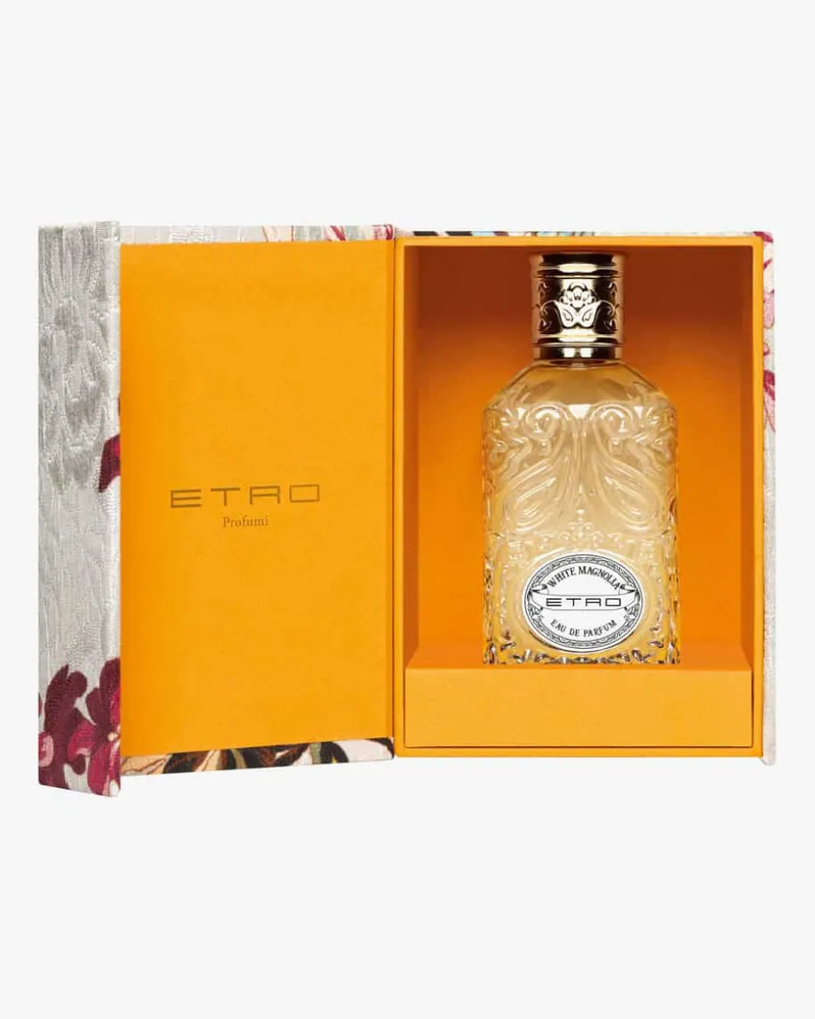 White Magnolia Eau de Parfum 100ml von ETRO Profumi.Extravaganz – so ikonischwie die Kleidung der italienischen Modemarke ist auch dasDesign der ETROParfums. Der Flacon, gekleidet im Paisley-Motiv mit goldenenDetails undextravaganten Aromen, ist zeitlos und elegant zugleich. EineVersinnbildlichungder Natur zusammen mit kräftigen weißen Hölzern spiegeltsich in diesem Duftwieder.