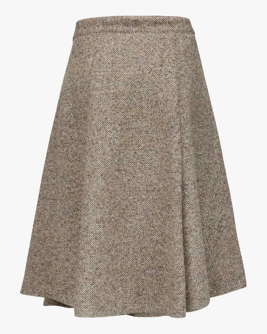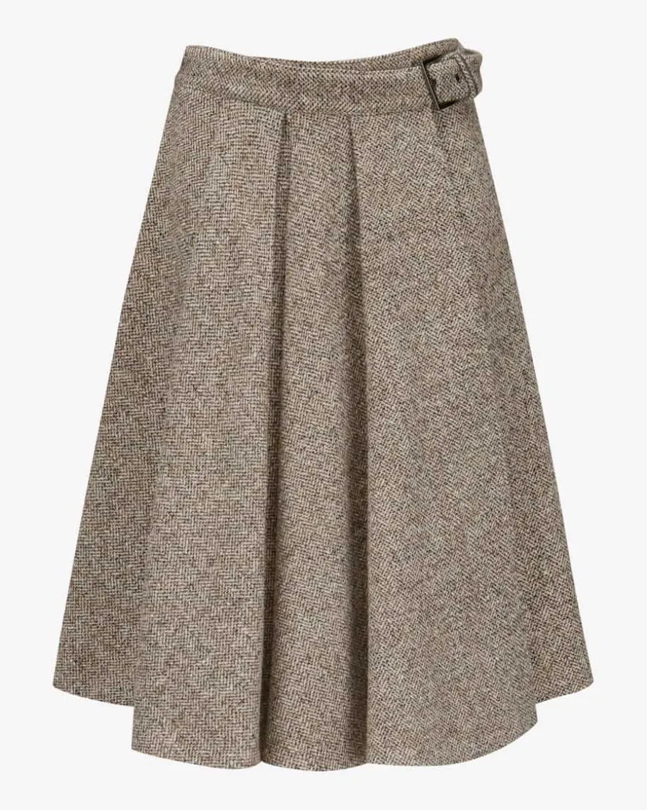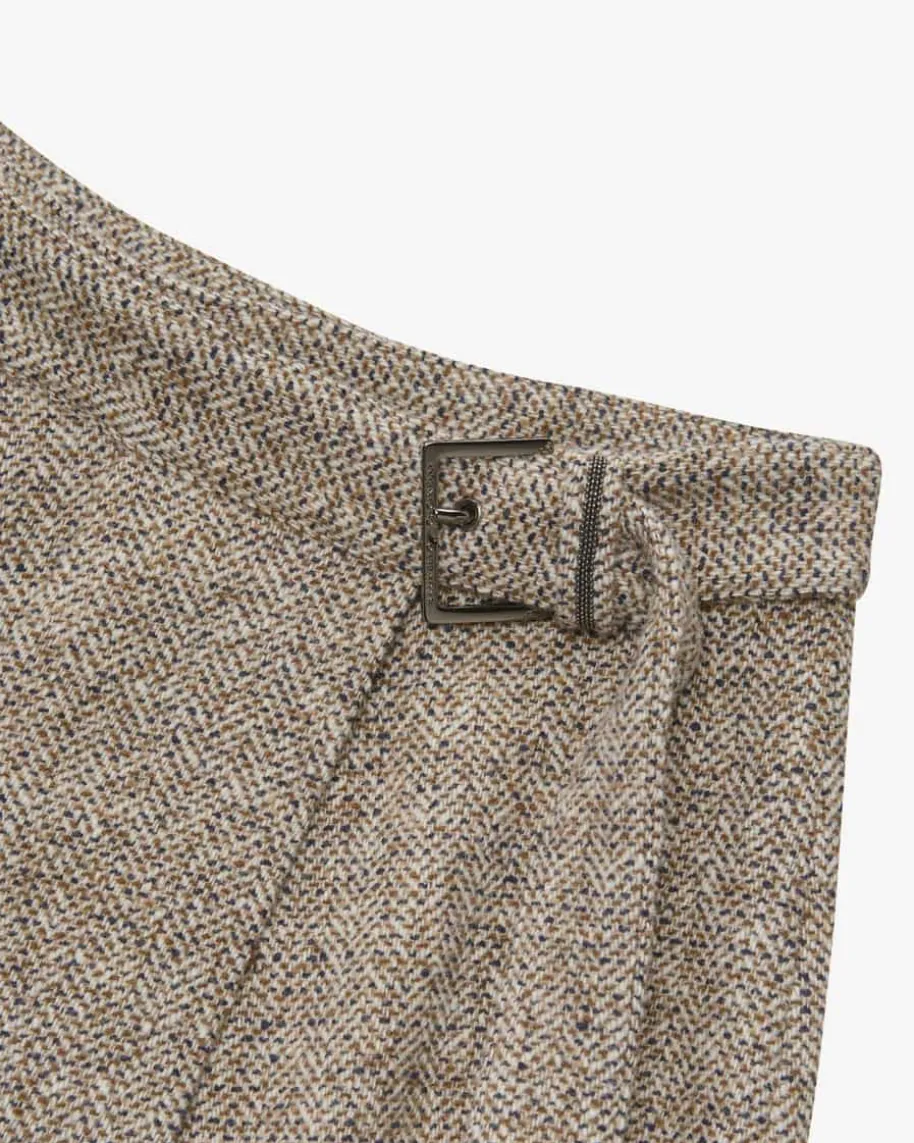 Wickelrock für Damen von Brunello Cucinelli in Taupe. Das Modell überzeugt dankweichem Schurwoll-Mix mit angenehmem Tragegefühl, während die edel changierendenKetten-Applikationen einen stilvollen Akzent hinzufügen. Das melierte Salt &Pepper Gewebe und die variabel verstellbare Schließe runden den Classic HeritageStyle harmonisch ab.