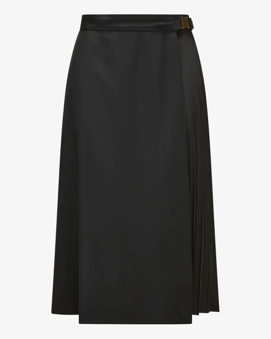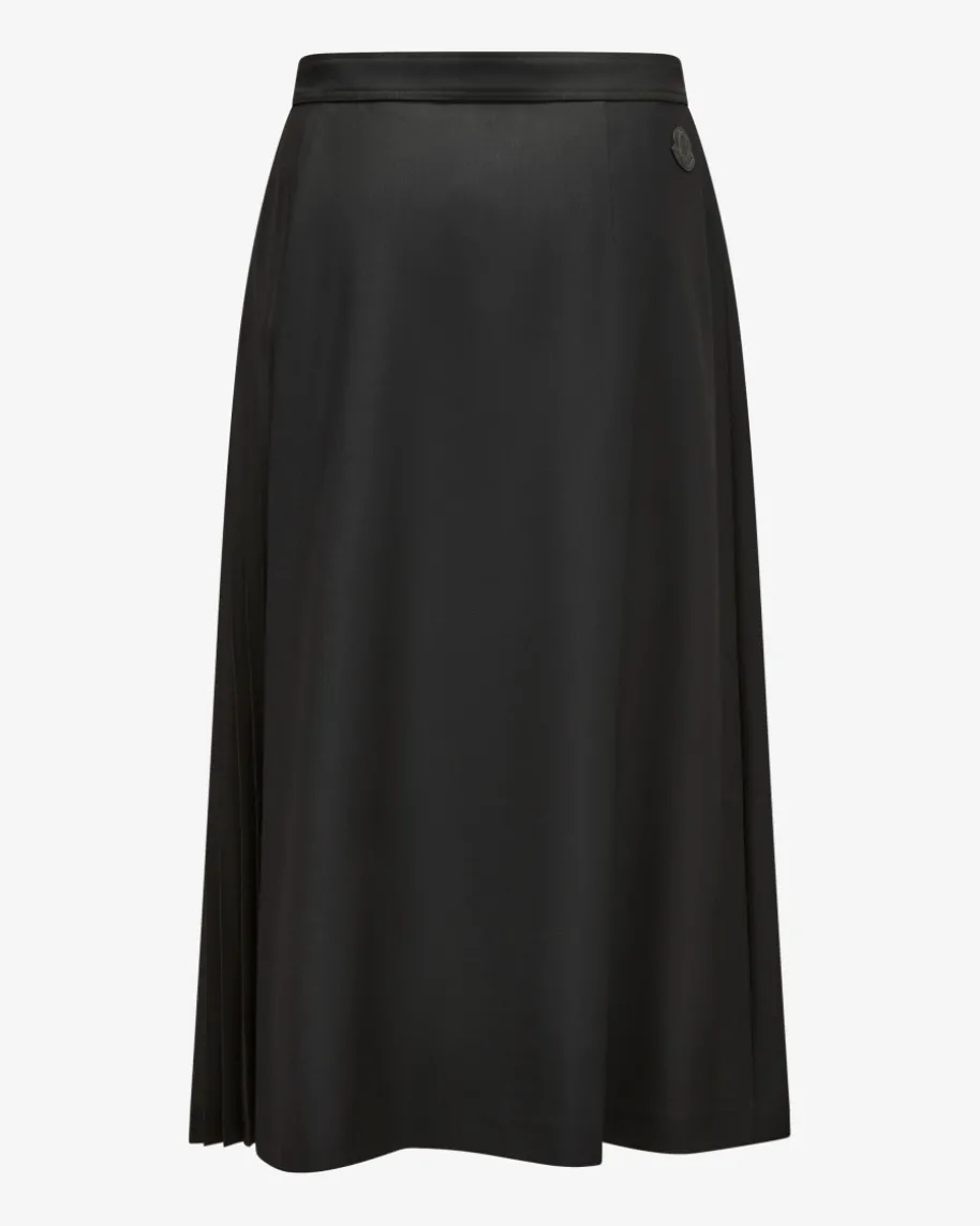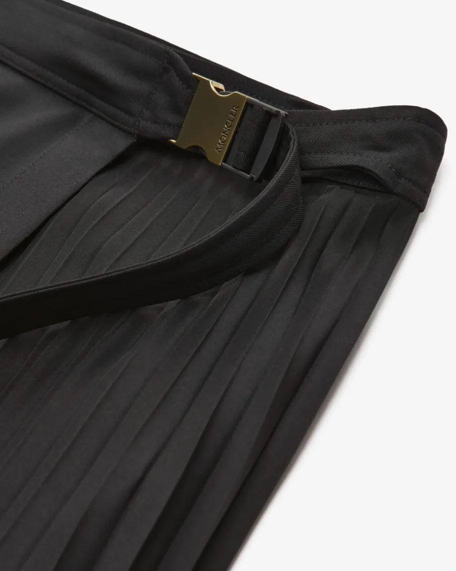 Wickelrock für Damen von Moncler in Schwarz. Das Modell begeistert mitraffinierter Wickel-Aufmachung mit verstellbarem Clip-Verschluss, während derMaterial-Mix aus Schurwoll-Qualität und Plissee-Schicht einen besonderen Twistverleiht.