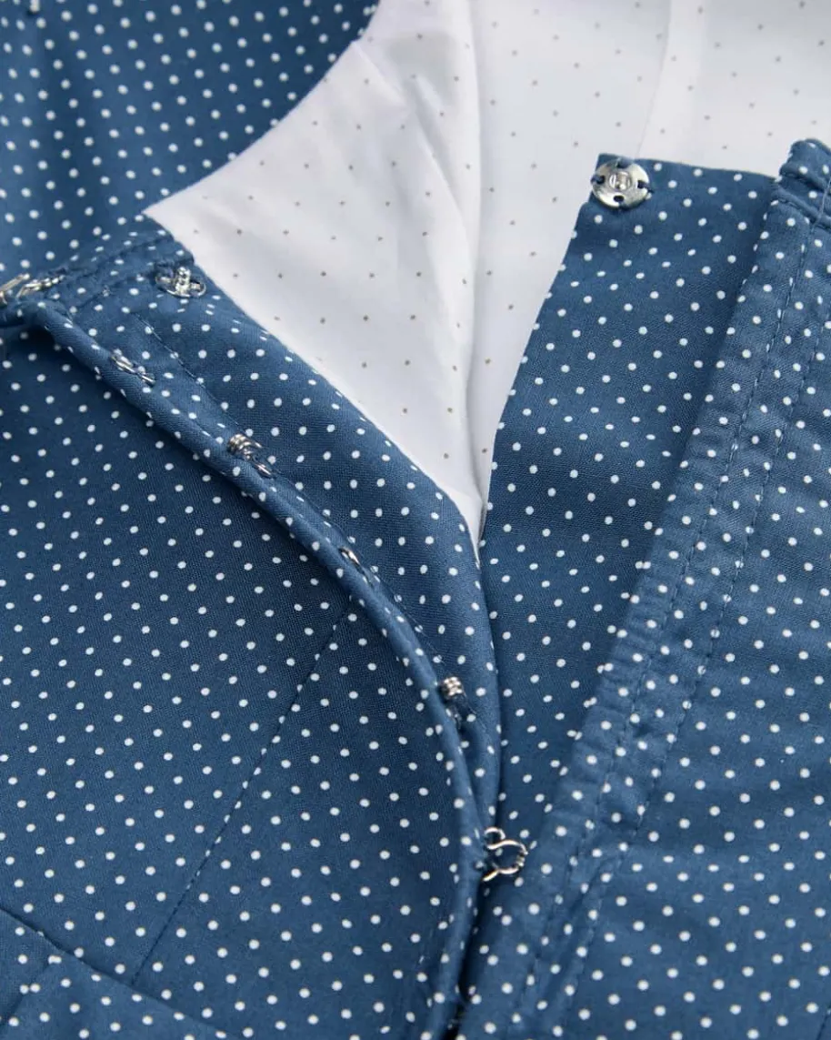 Wiesndirndl lang mit Schürze für Damen von LODENFREY in Dunkelblau und Weiß.Dank der Verwendung von leichter Baumwoll-Qualität und der Kombination vonfeinem Punkte-Muster und floralem Print wird ein traditioneller Favorit mitfemininem Charme kreiert. Klassische Trachten-Details runden das stilvolleGesamtbild harmonisch ab.