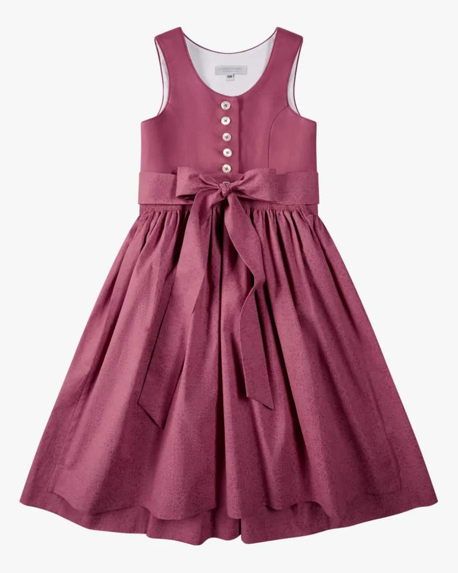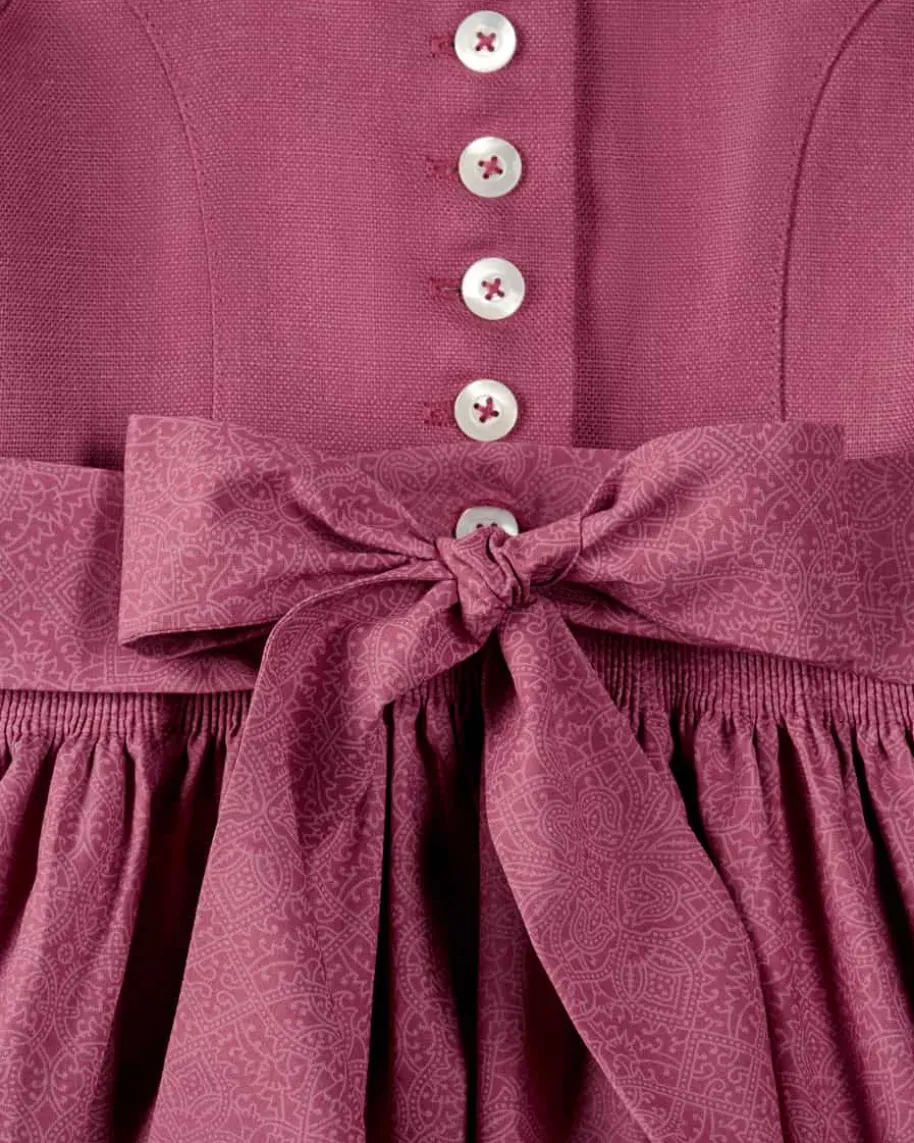 Wiesndirndl mit Schürze für Mädchen von LODENFREY in Himbeere. Dank derklassischen Schnittführung und dem Leinen-Mieder begeistert das süße Modell mitmodernem Charme. Zugleich sorgen der Rock mit floralen Ornamenten und die tonalgemusterte Schürze für optische Highlights.
