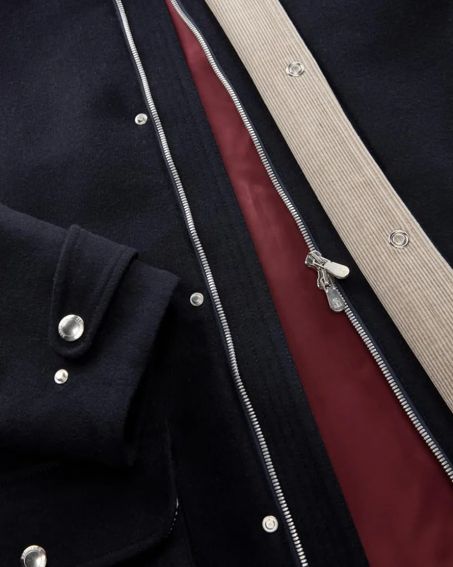 - Druckknopfleiste mit verdecktem Zweiwege-Reißverschluss