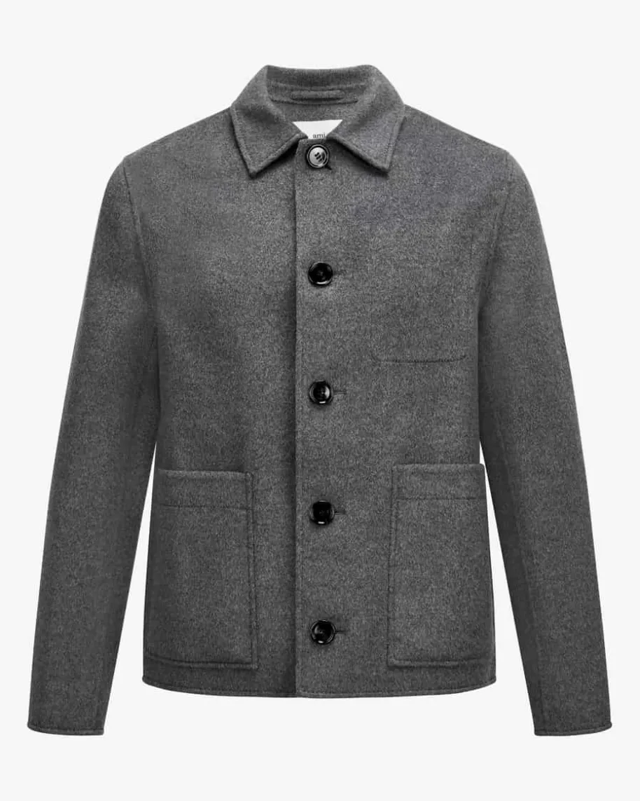 Wolljacke für Herren von Ami Paris in Grau. Ami Paris ist benannt nach denFreunden von Alexandre Mattiussi – Mode mit persönlicher Note. Das Modellbegeistert mit hochwertigem Wolle-Cashmere-Mix in besonders weicher Doubleface-Verarbeitung, während klassische Details einen zeitlosen Look schaffen.