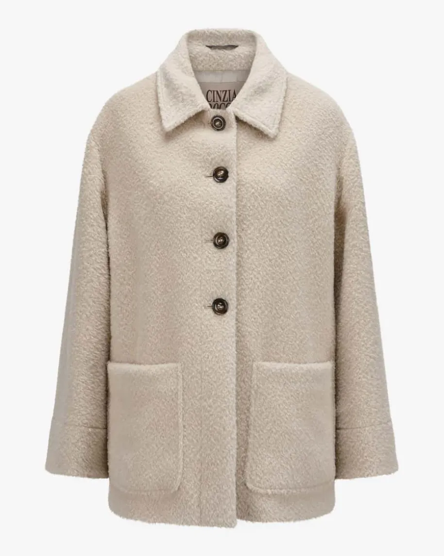 Wolljacke für Damen von Cinzia Rocca in Creme. Seit den 1980er-Jahren stehtCinzia Rocca Damenmode für Urban Couture Luxus. Das Modell punktet dankhochwertigem Alpakawoll-Mix sowohl mit besonderer, strukturierter Haptik alsauch edler Optik, während die weite Passform mit markanten Seitenschlitzen denmodernen Look gekonnt in Szene setzt.