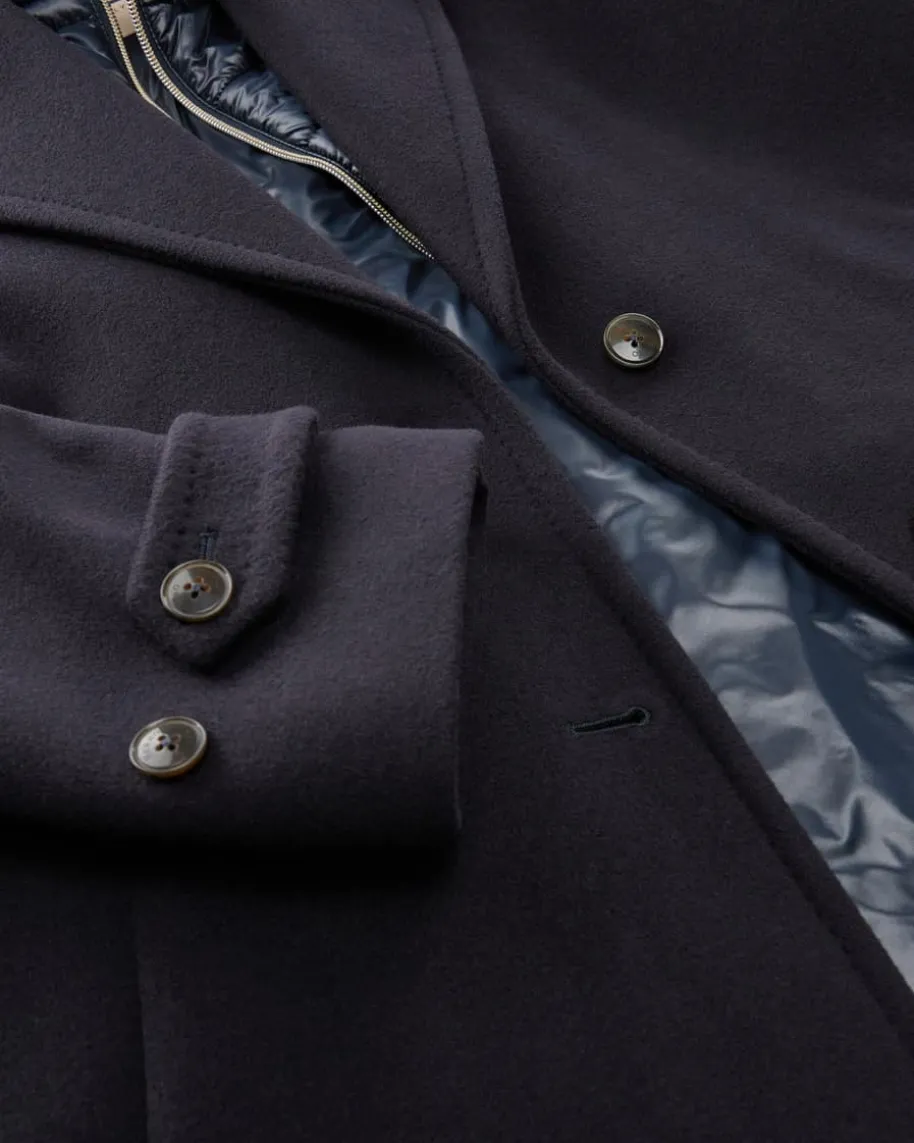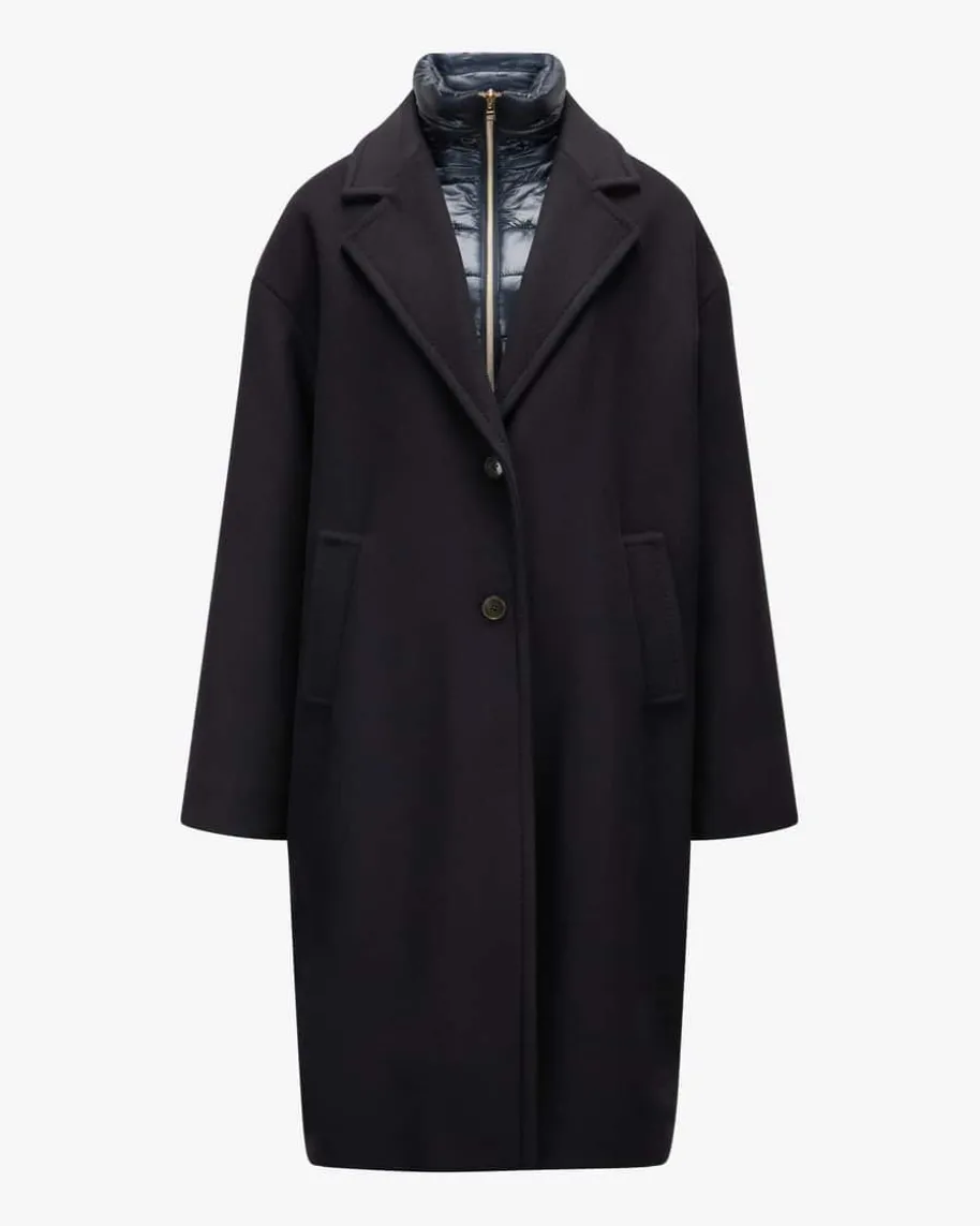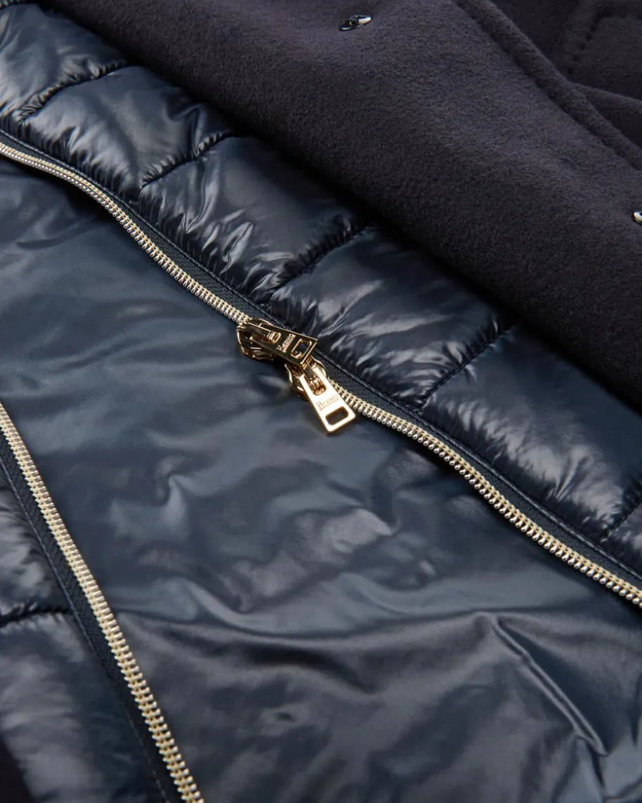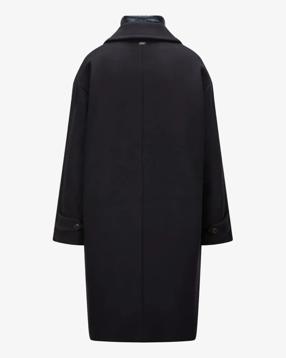 Wollmantel für Damen von Herno in Navy. Das italienische Traditionsunternehmenentwirft seit vielen Jahren luxuriöse Jacken. Mit diesem gefütterten Modell hatdas Label einen eleganten Übergangs-Begleiter mit hochwertiger Manteco-Schurwolle geschaffen, welcher dank der heraustrennbaren Stepp-Blende mitStehkragen individuelle Tragemöglichkeiten mit sportivem Touch und zusätzlicheWärme-Isolierung garantiert.