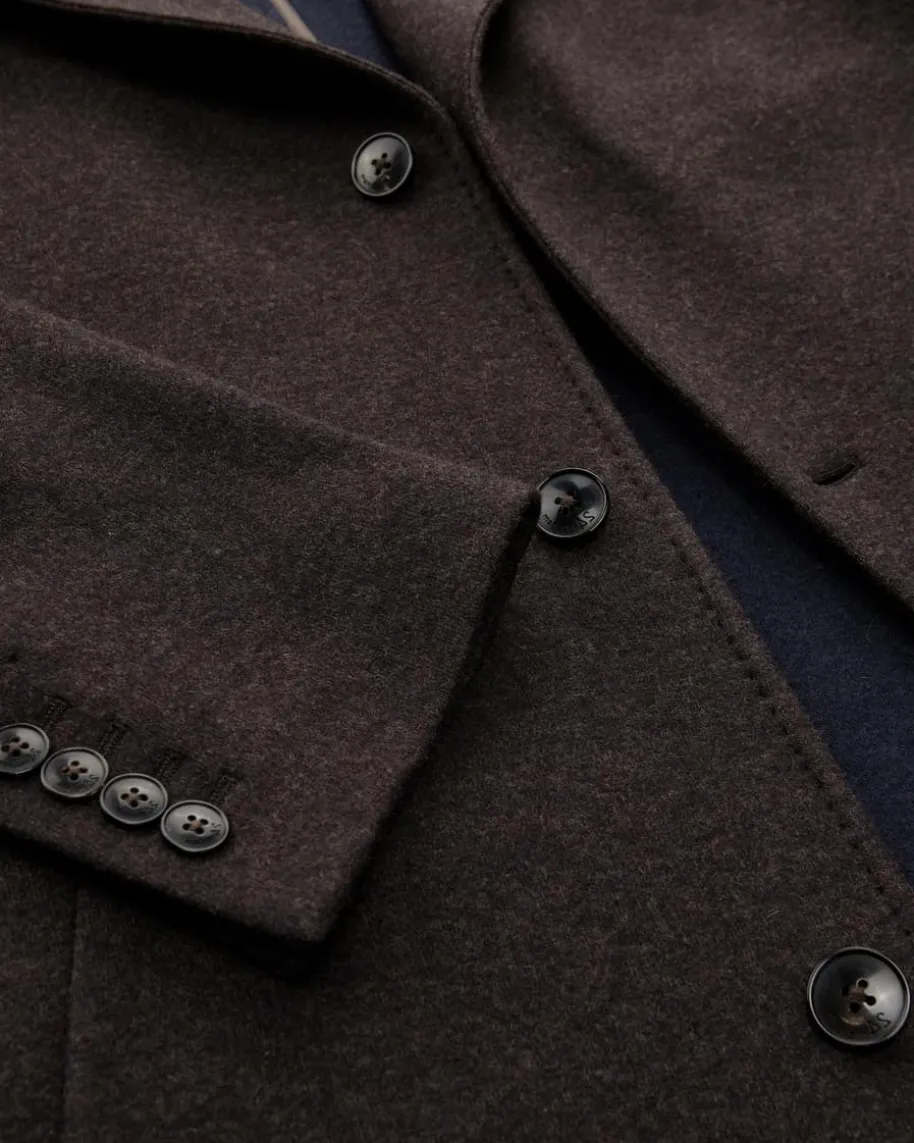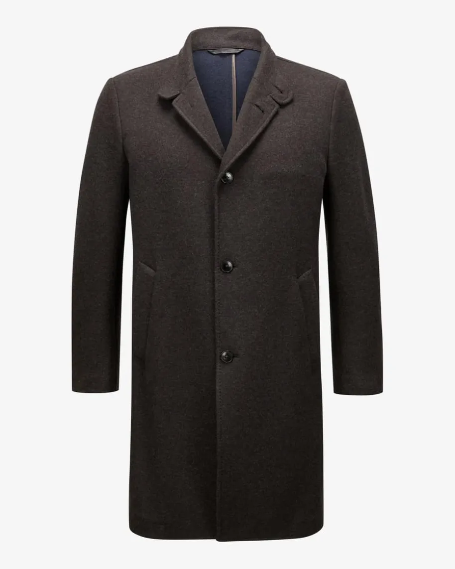 Wollmantel für Herren von Manzoni 24 in Dunkelbraun. Zeitlos, elegant und stetsmit einem zeitgemäßen Blick entwirft die Marke luxuriöse Designs. Auch diesesModell zeichnet sich durch die Verwendung des hochwertige Cashmere-Woll-Mix aus.In Verbindung mit klassischen Details avanciert das antaillierte Modell so zummaskulinen Begleiter an kühlen Tagen.