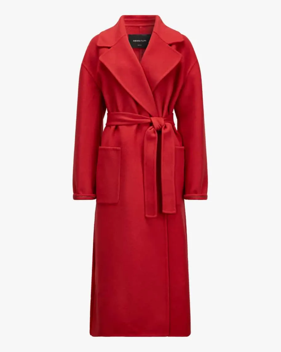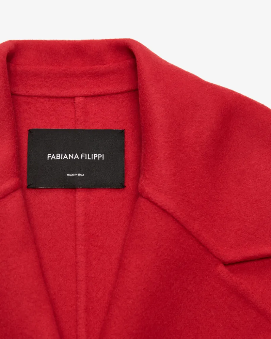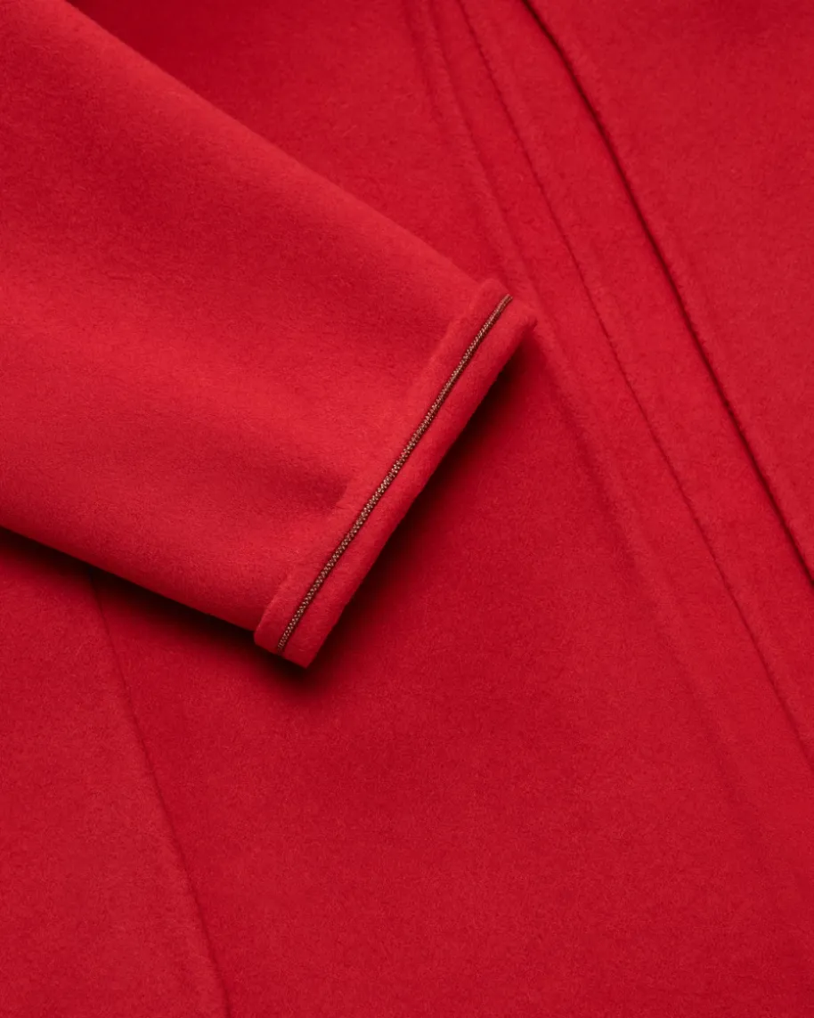 Wollmantel für Damen von Fabiana Filippi in Rot. Das Modell begeistert mitweichem Merinowolle-Cashmere-Mix in hochwertiger Doubleface-Verarbeitung, diefür angenehmen Tragekomfort sorgt. Die weite Passform mit klassischen Detailswird mit feinen Schmuckketten-Applikationen an den Ärmelenden gekonntabgerundet.