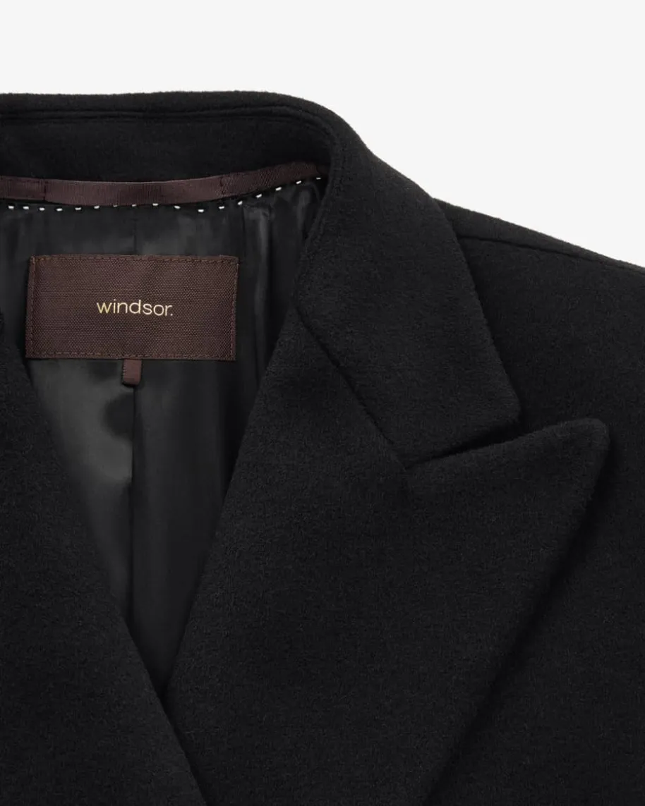 Wollmantel für Damen von Windsor in Schwarz. Das Modell überzeugt dank demhochwertigen Woll-Mix mit einer weichen Haptik, während die zweireihigeAufmachung sowie der variable Reverskragen mit Knopf-Verschluss das Gesamtbildklassisch-elegant vollenden.