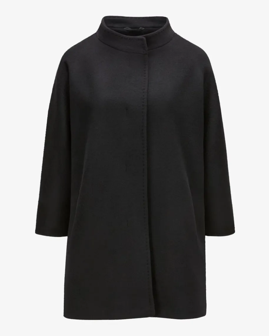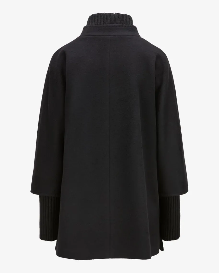 Wollmantel für Damen von Cinzia Rocca in Schwarz. Das Modell begeistert durchdie hochwertige Schurwoll-Verarbeitung sowie der legeren Passform und sorgt sofür einen modischen Übergangslook, während der Stehkragen sowie die Rippstrick-Details dem Kurzmantel einen modernen Touch verleihen.